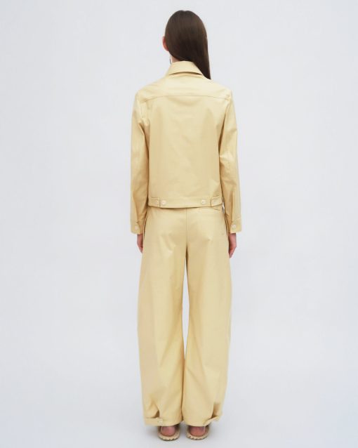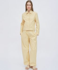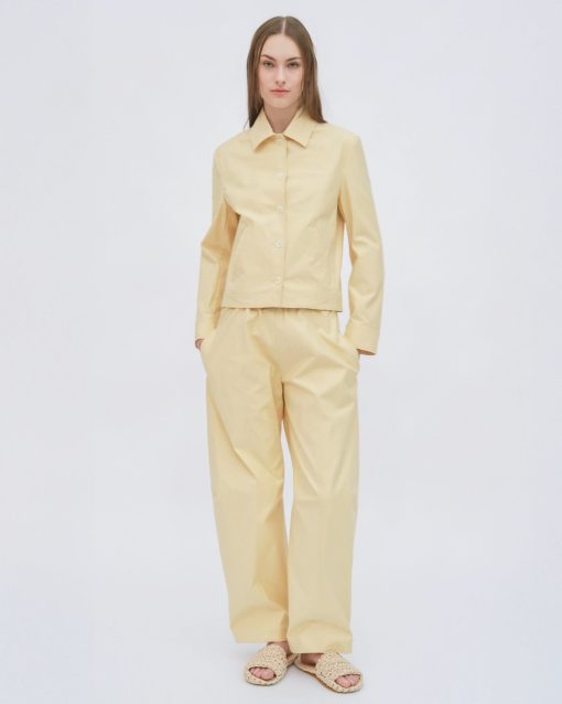 The Stretch Cotton Shantung is a crisp and structured cotton blend that offers newfound ease and comfort to tailored styles. It offers wearability to Rosetta Getty’s signature pant silhouettes.