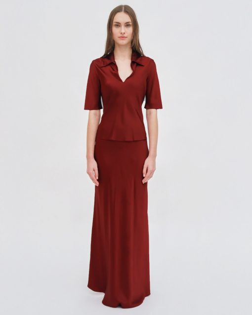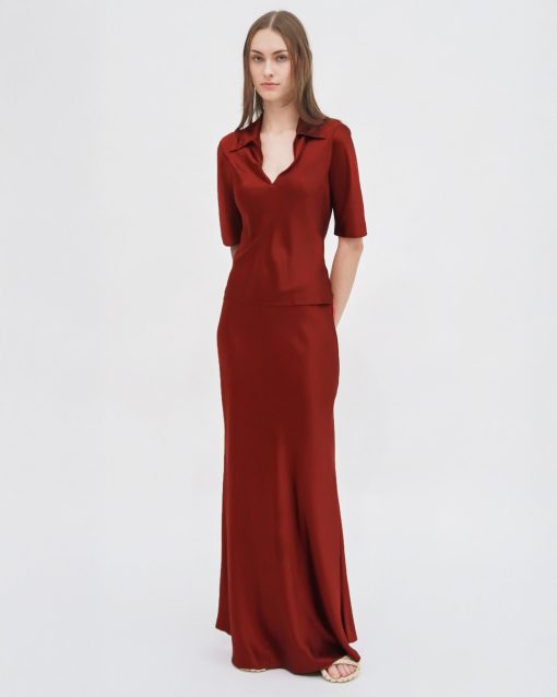 Rosetta Getty Women’s Bias Polo Top | Berry