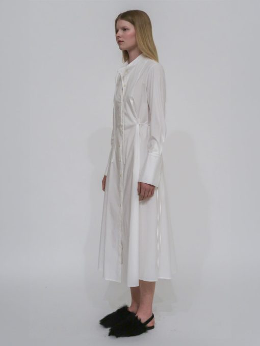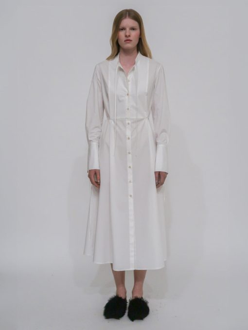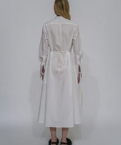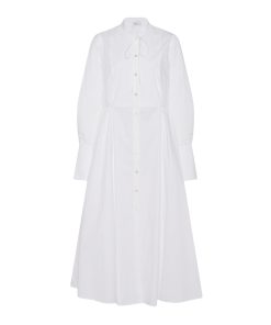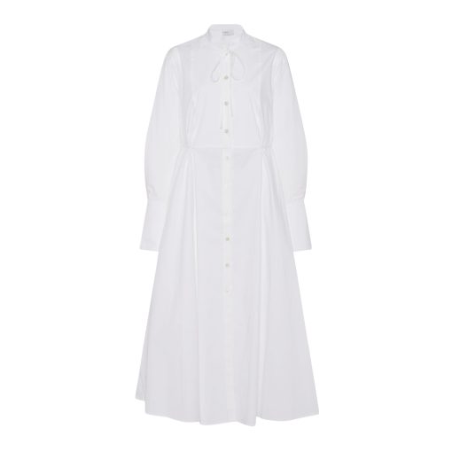 Rosetta Getty presents the Bib Tie Shirtdress for Pre-Fall 24, updating an archetypal silhouette. Featuring the hallmarks of the foundational style, this new iteration is designed with a seamed bib-style yoke adorned with long ties. Another tie can be worn loose or cinch the waist, highlighting the A-line shape of the skirt.