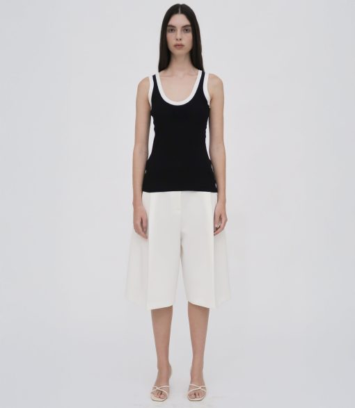 The ringer-style Contrast Rib Tank is designed with a versatile scoop neckline and brings a vintage- inspired design to our Mercerized Cotton Rib Jersey capsule with alternative binding for a pop finish. It has a fitted silhouette and is embellished with an embroidered logo signature just below the neck.