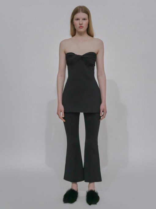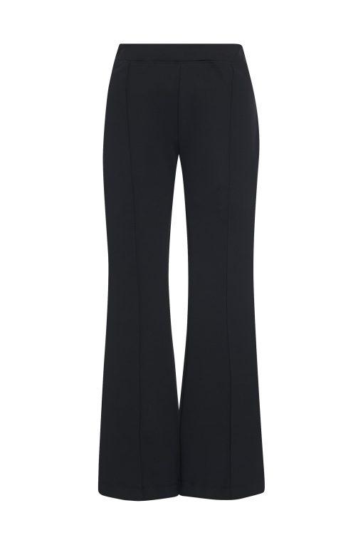 A go-to style in the Scuba Doubleknit, this signature pant is designed to flatter the body with a mid-rise and flared leg. The sleek fabric and elasticized waist impart natural ease to the cropped silhouette, finished with pintuck seaming to create a flattering line and an elongating effect.