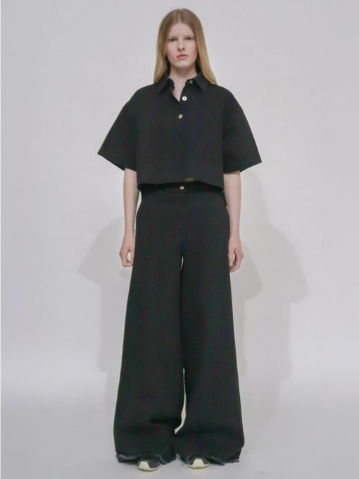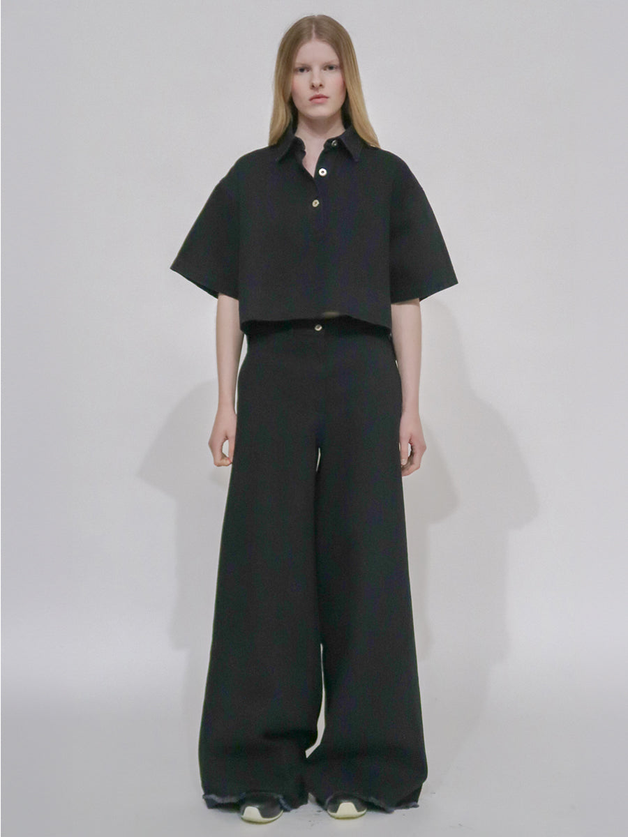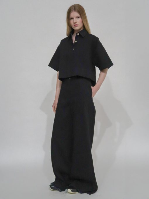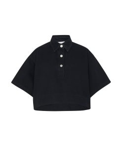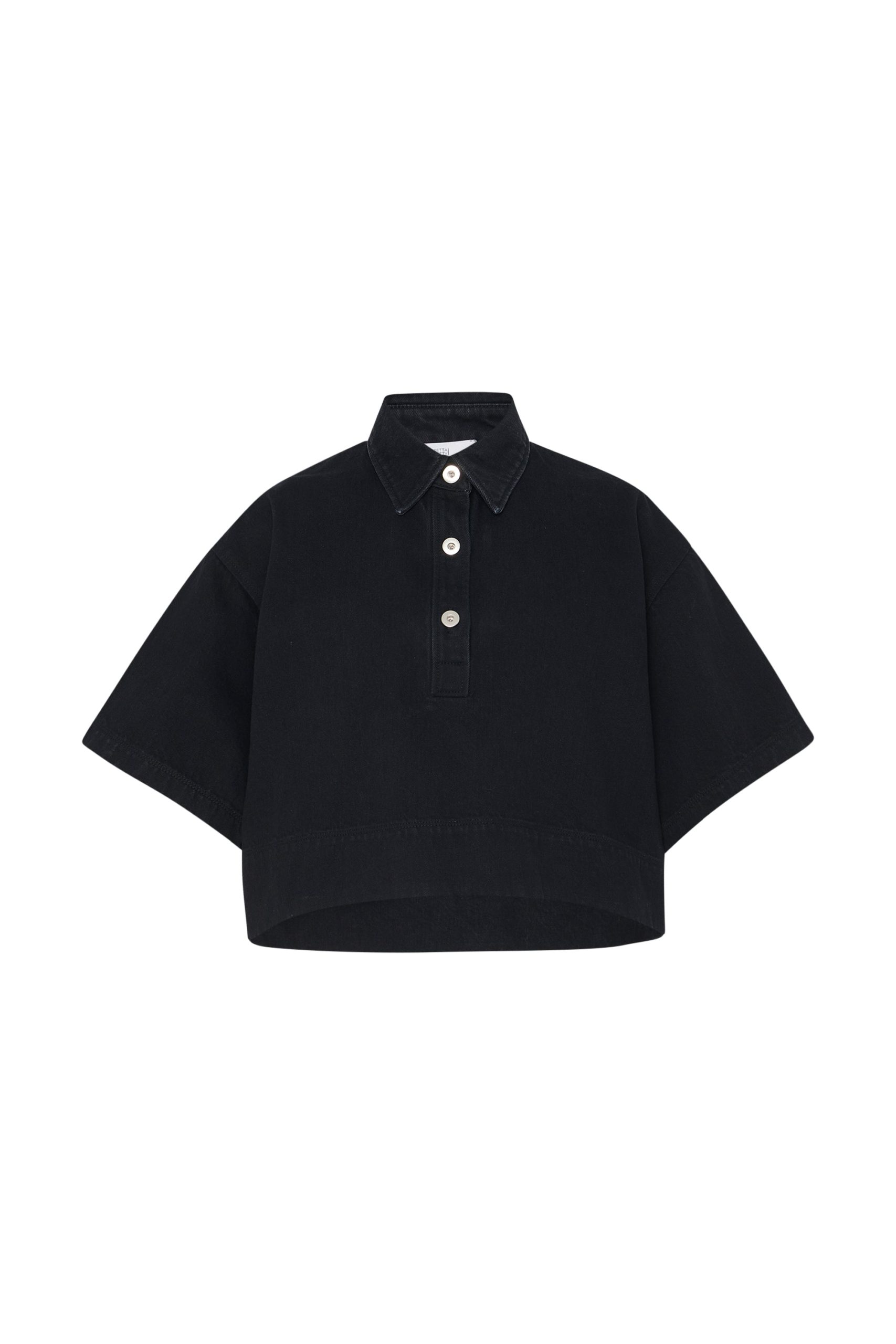Cut to a wide, boxy silhouette, our Cropped Oversized Polo is designed to hit at the waist. Crafted of mid-weight black Rinse Wash Denim, it has timeless appeal and inherent versatility allowing it to be dressed up or down.