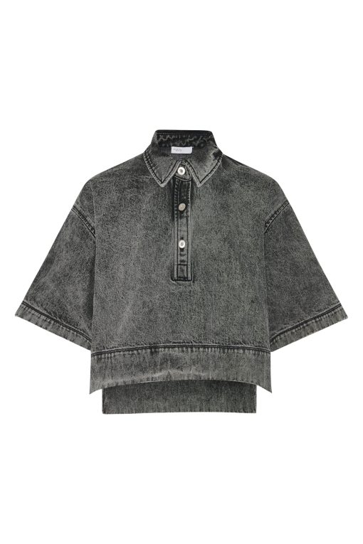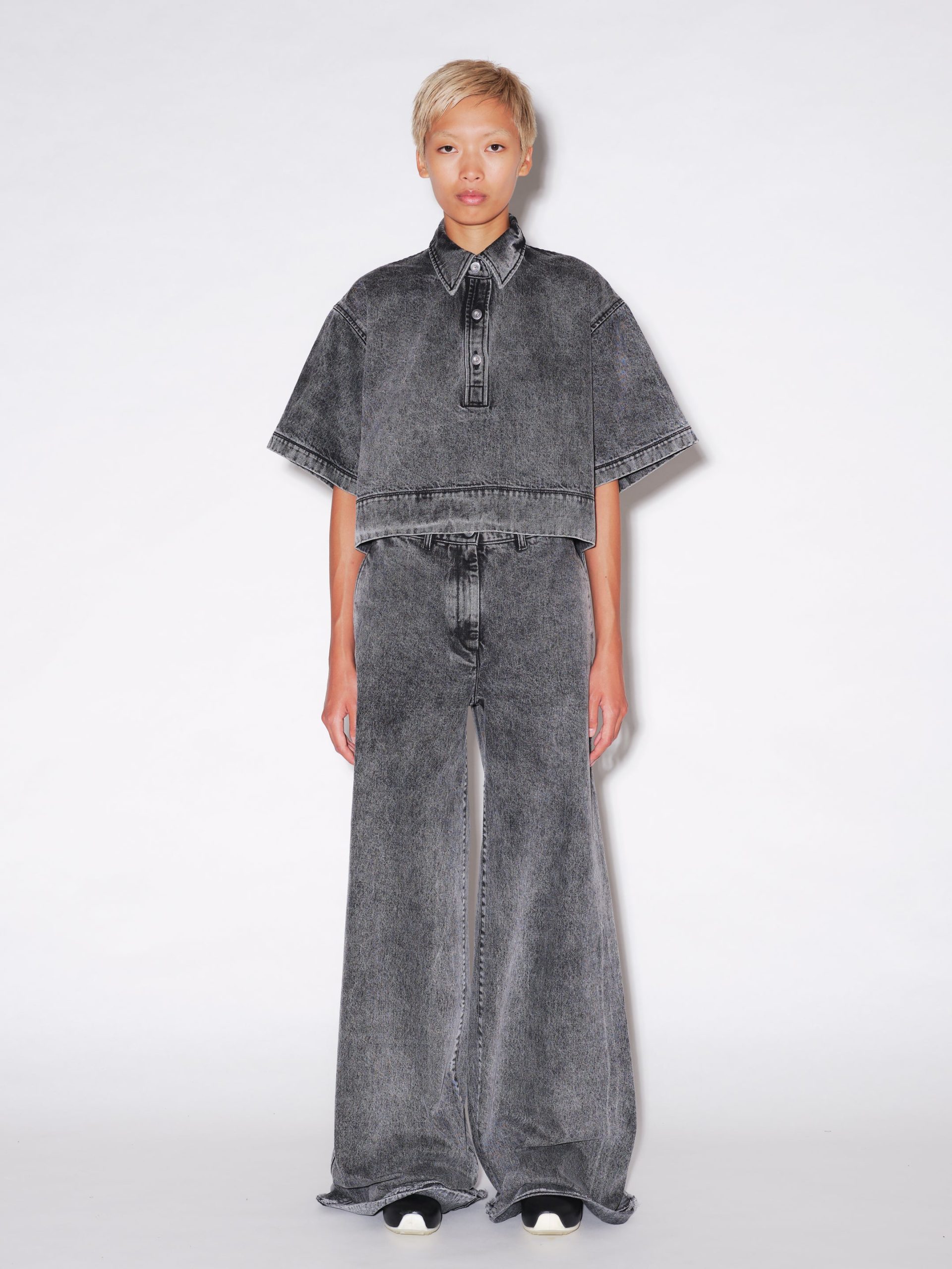Cut to a wide, boxy silhouette, our Cropped Oversized Polo is designed to hit at the waist. Crafted of mid-weight Acid Wash Denim, the faded fabric lends casual appeal to what is typically a polished style.
