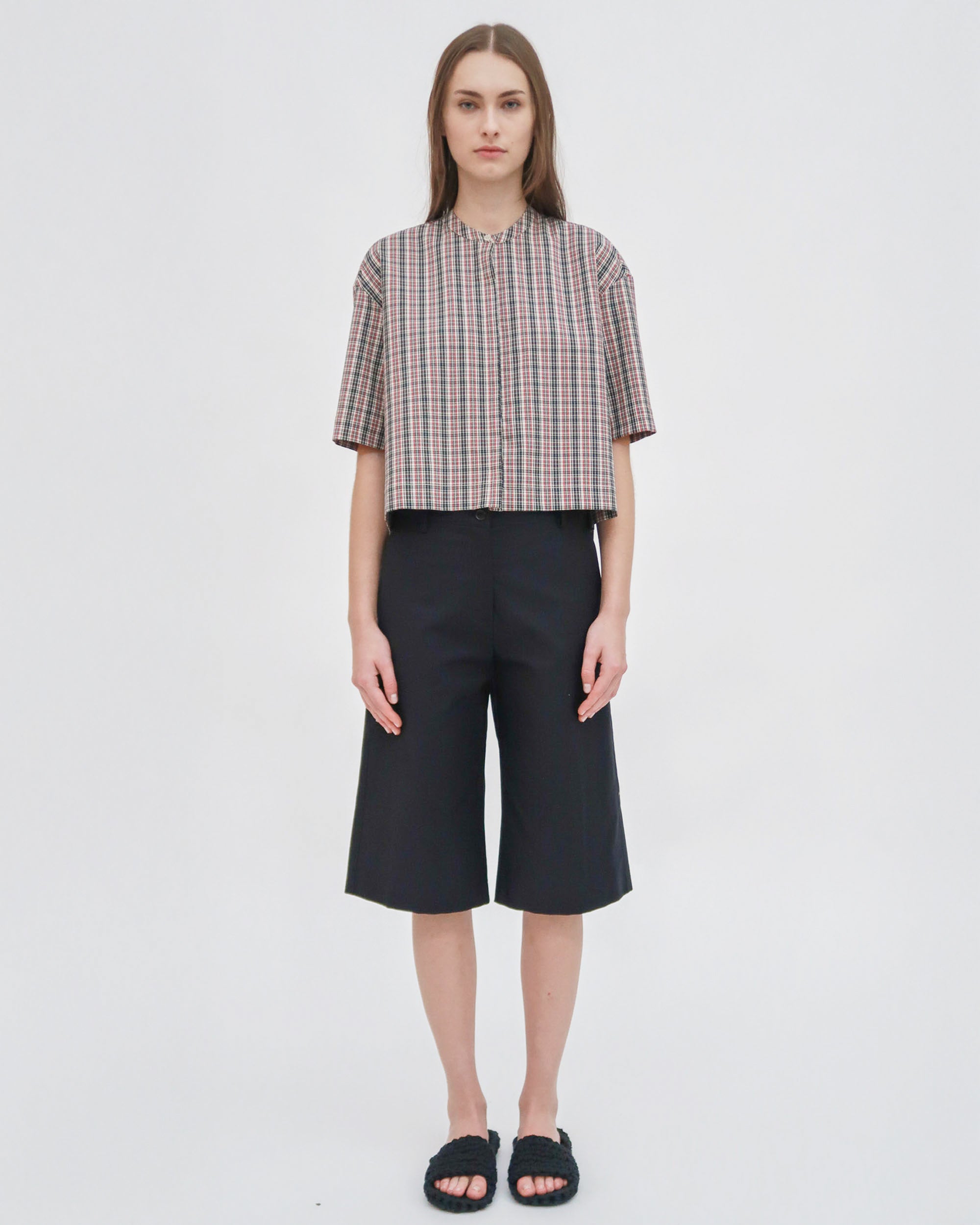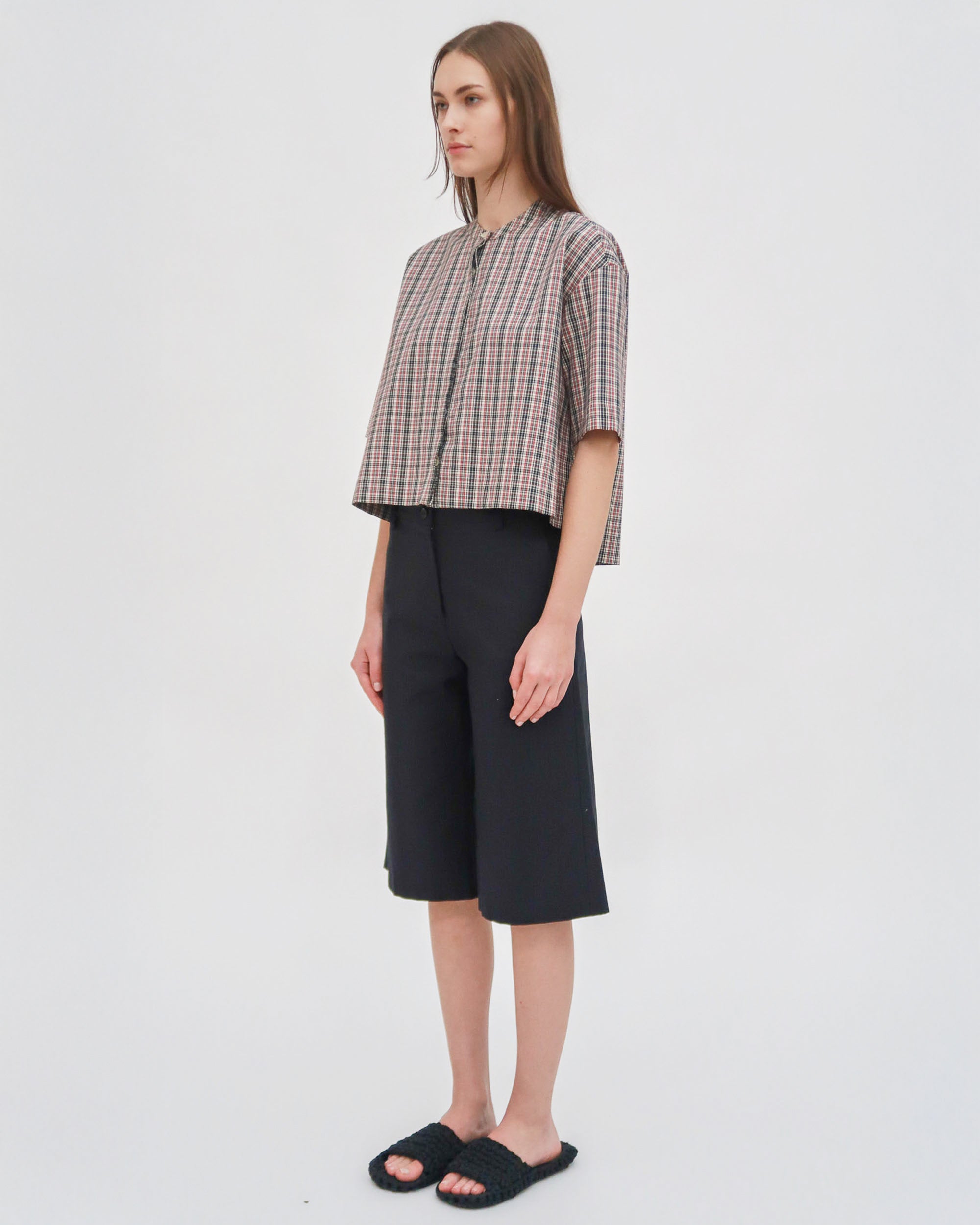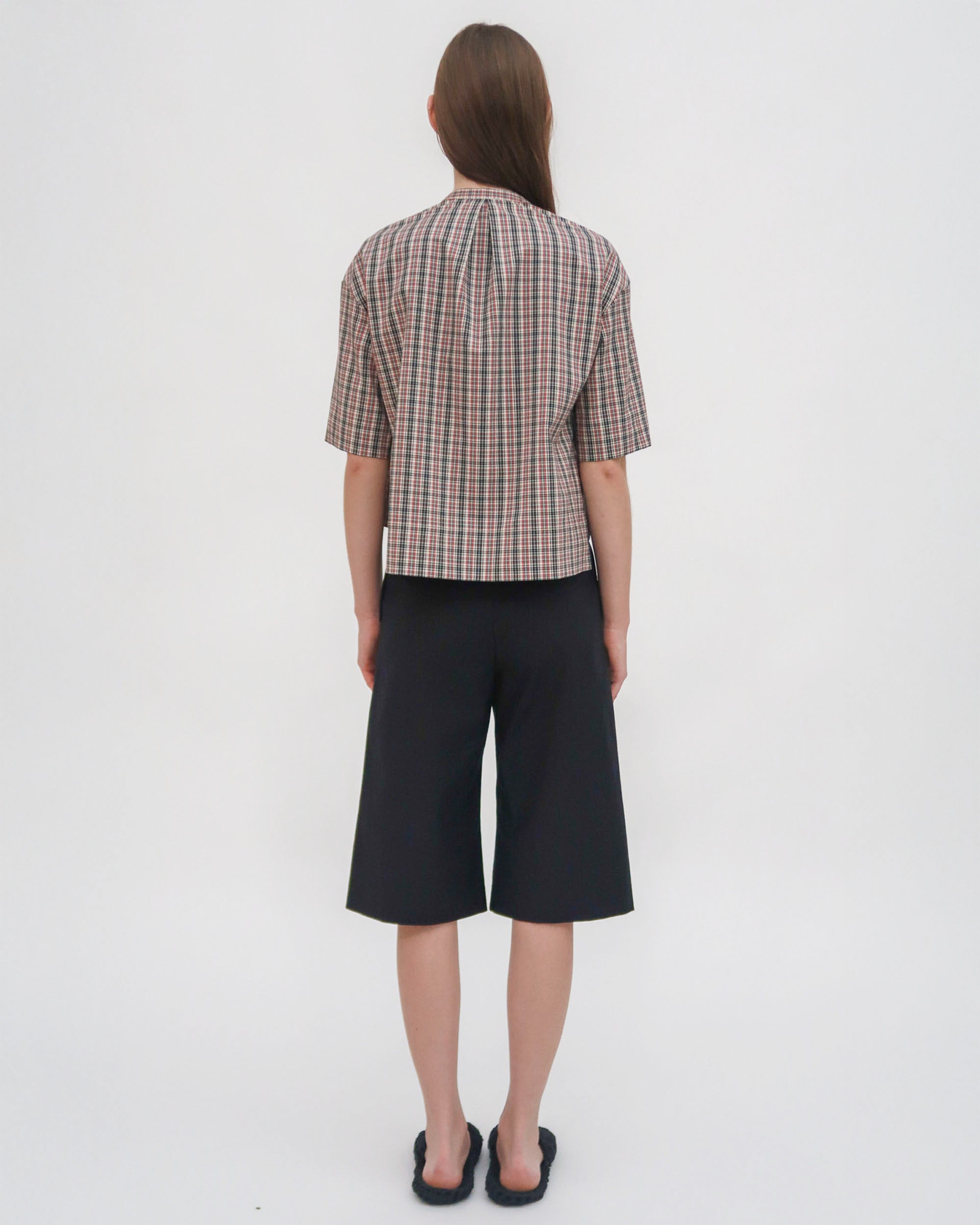 Pairing the innate polish of shirting silhouettes with a more relaxed, boxy, cropped shape, this shirt is our newest staple. Featuring in a Japanese shirting fabric with a subtle tricolor plaid weave, it is lightweight and breathable for effortless year-round wear.