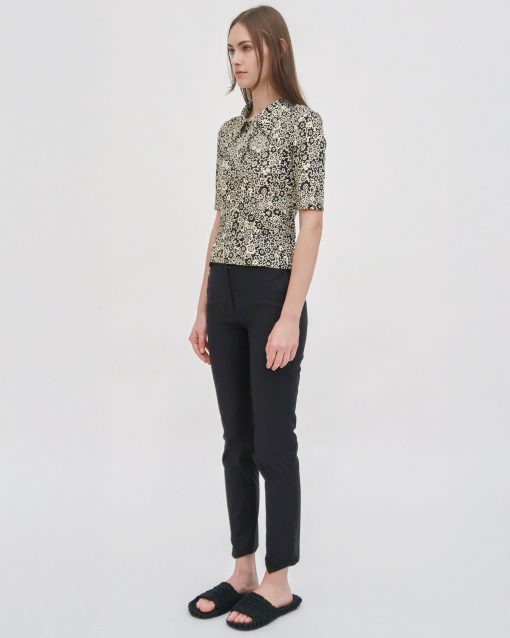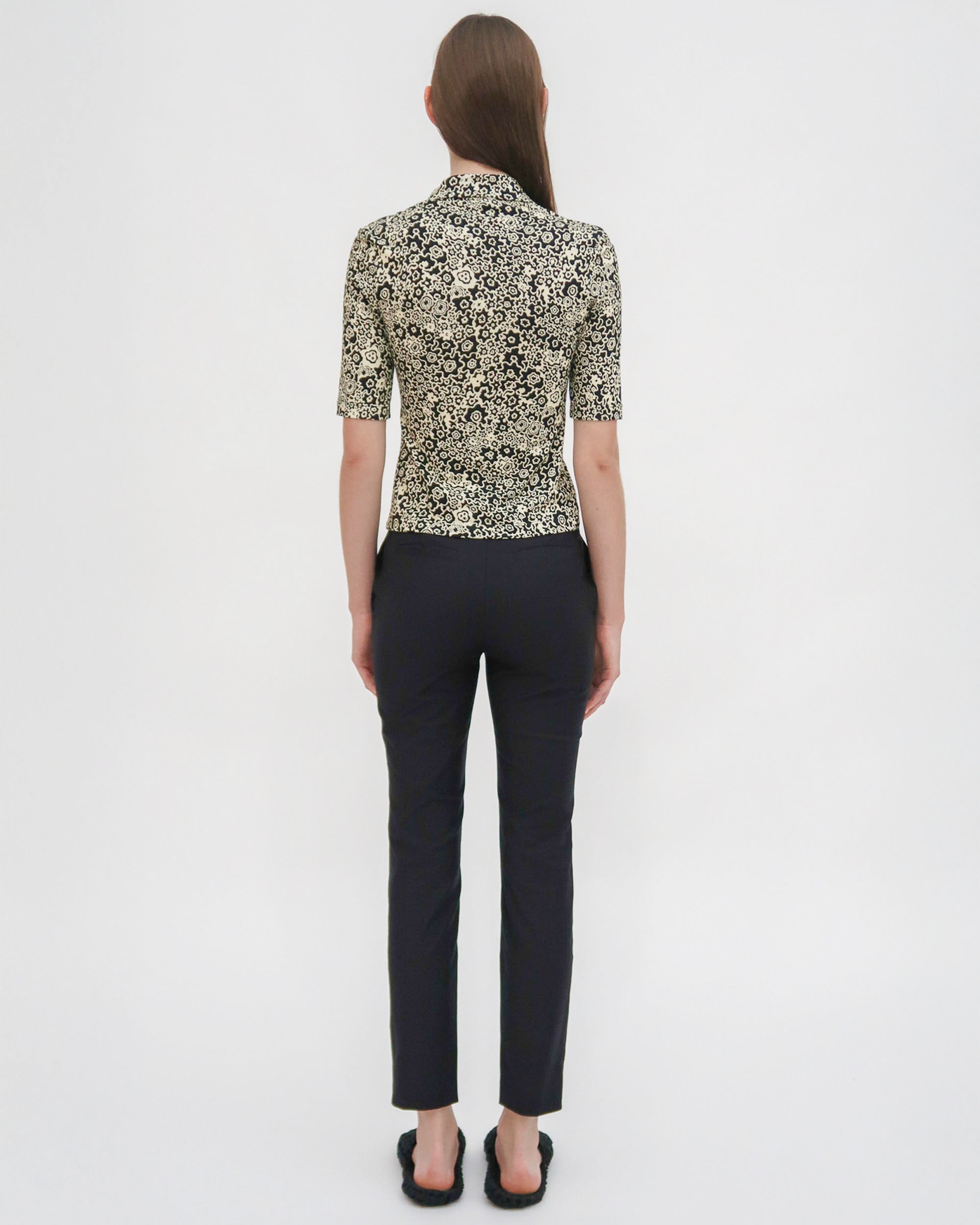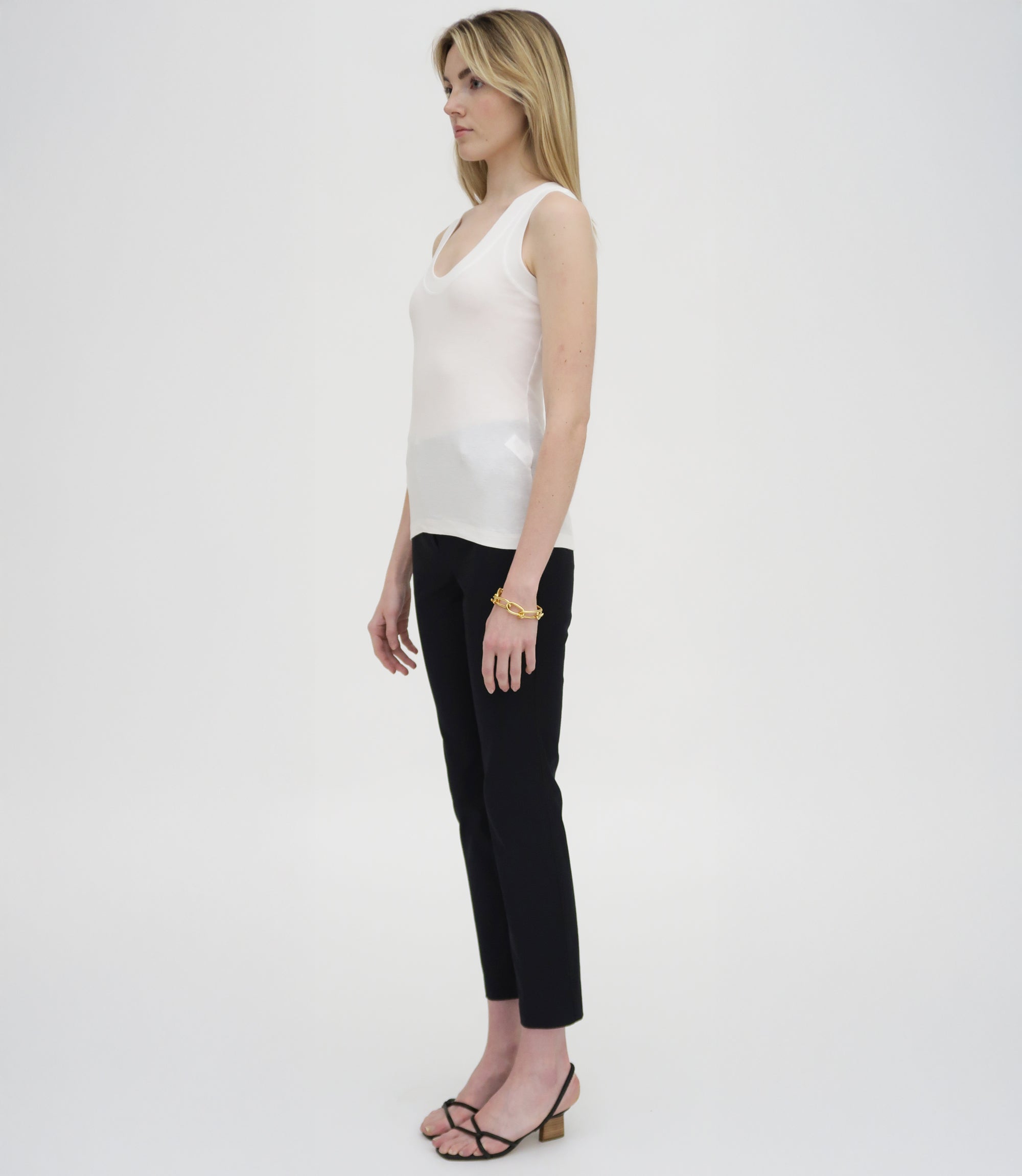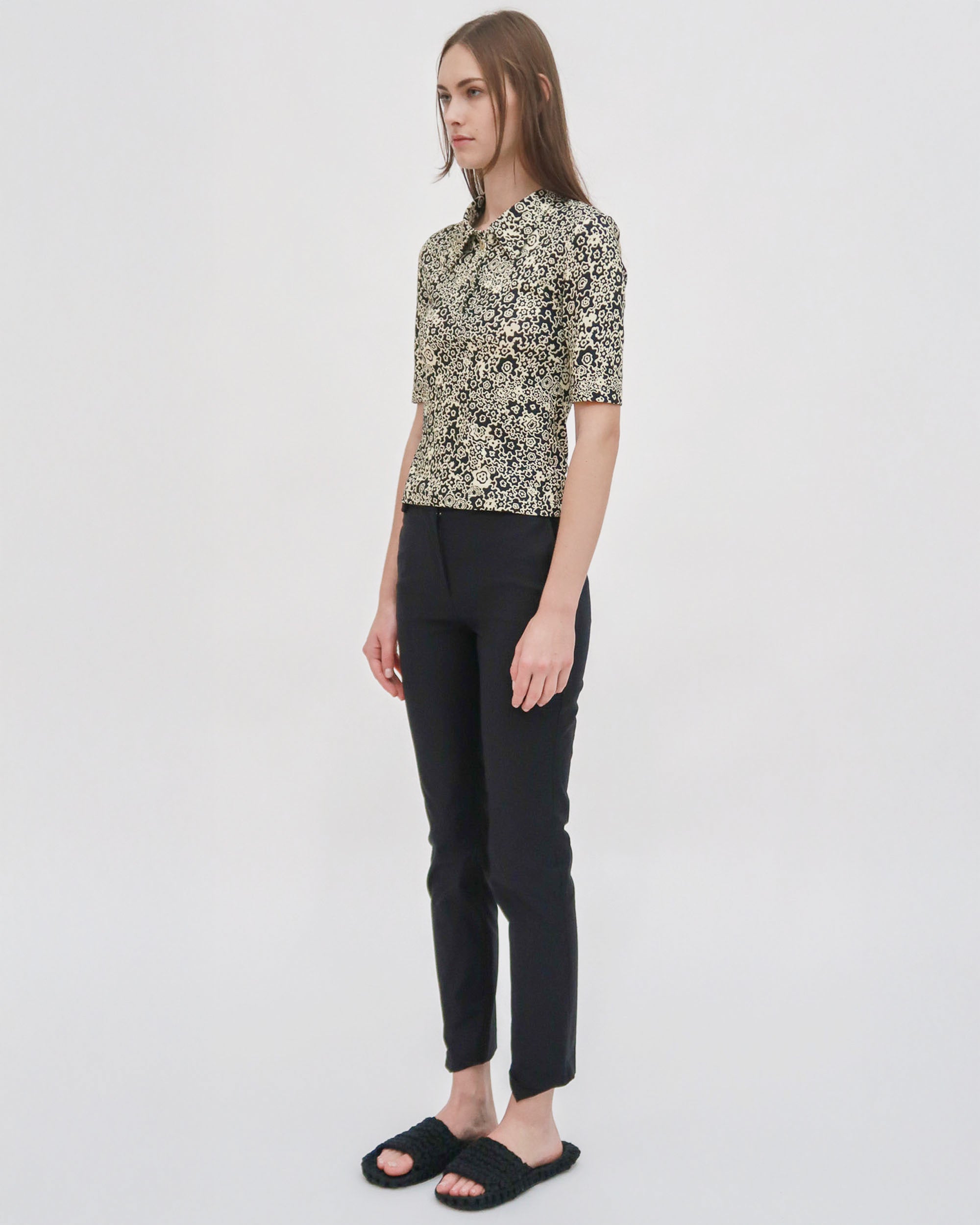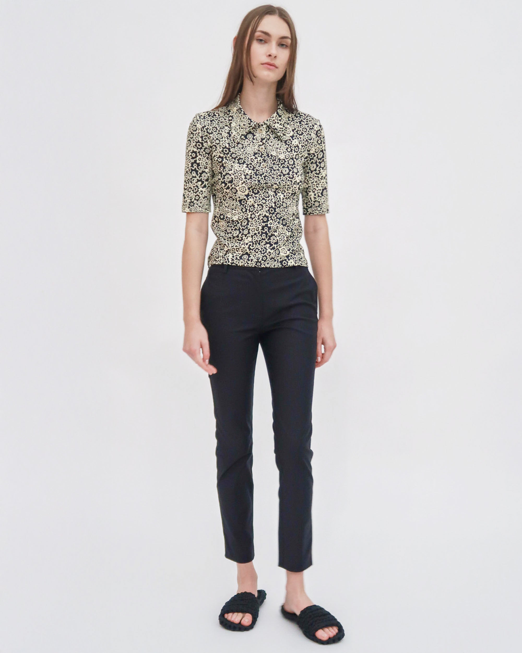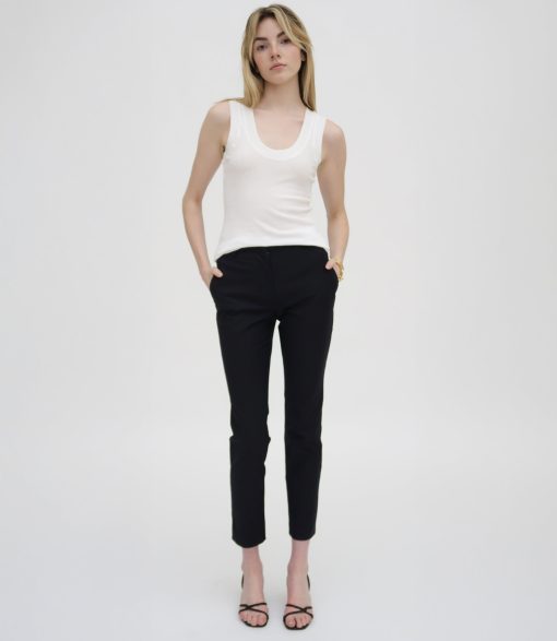 The Stretch Cotton Shantung is a crisp and structured cotton blend that offers newfound ease and comfort to tailored styles. It offers wearability to Rosetta Getty’s signature pant silhouettes.