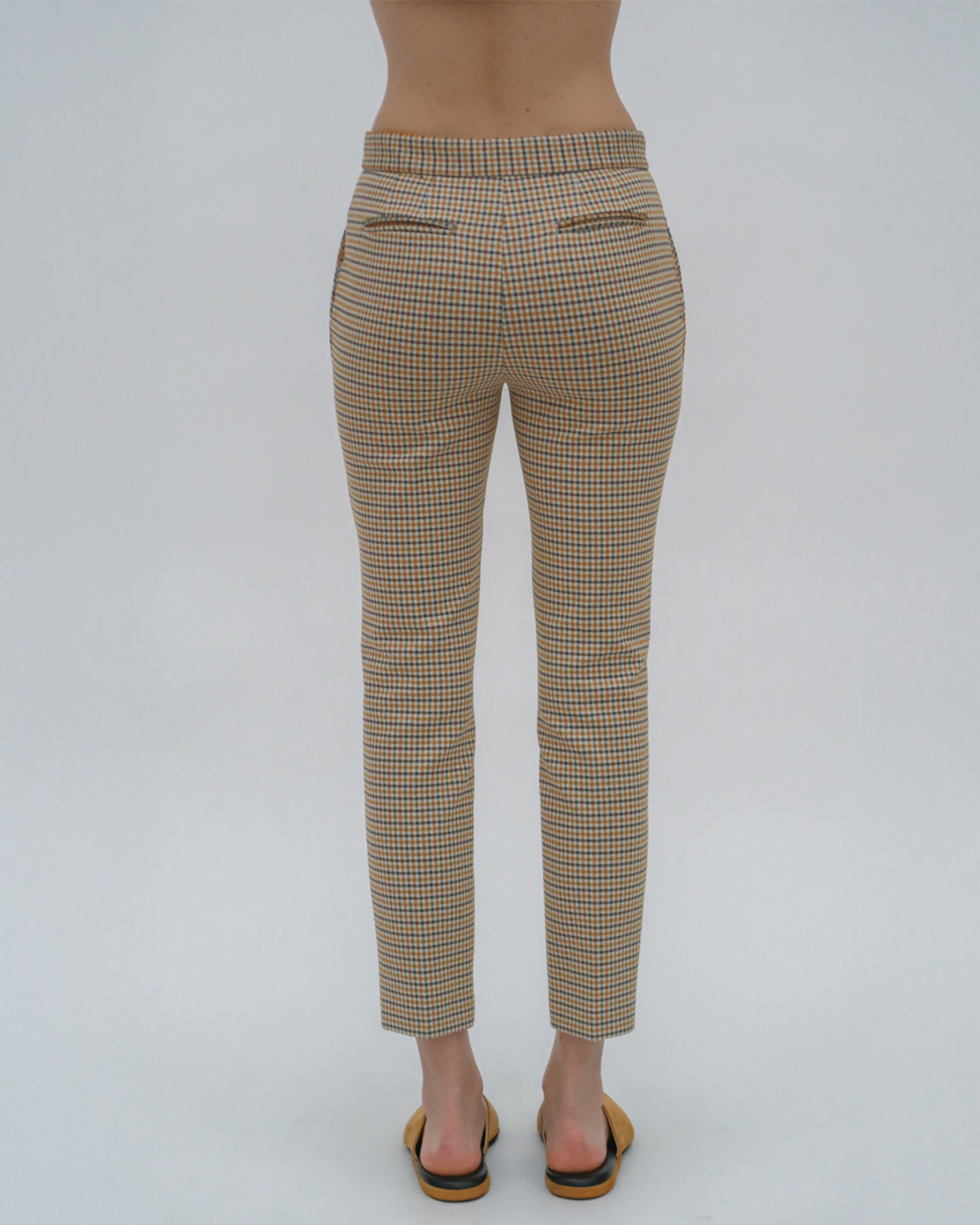 A revival of a best-selling Rosetta Getty style, the Cropped Skinny Pant returns for Resort 25 in Houndstooth Plaid Interlock Jacquard. Topped with an elasticized waist and cut slim through the leg, it is cropped above the ankle.