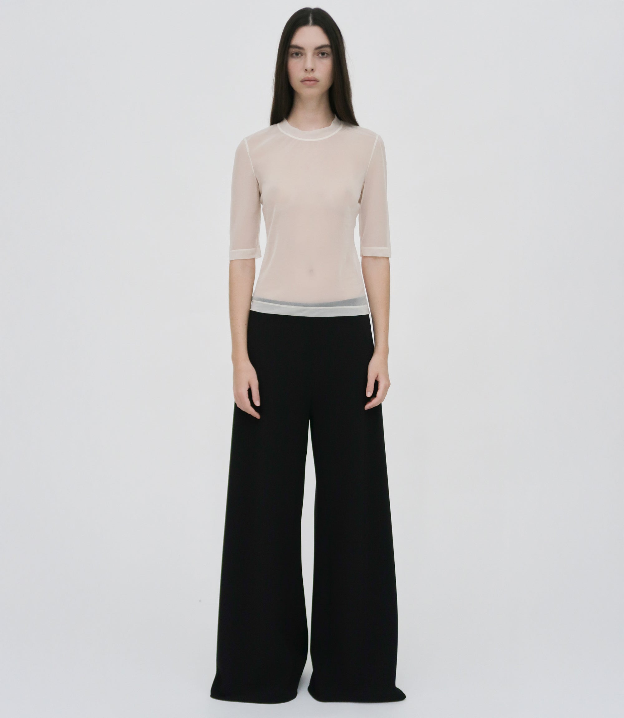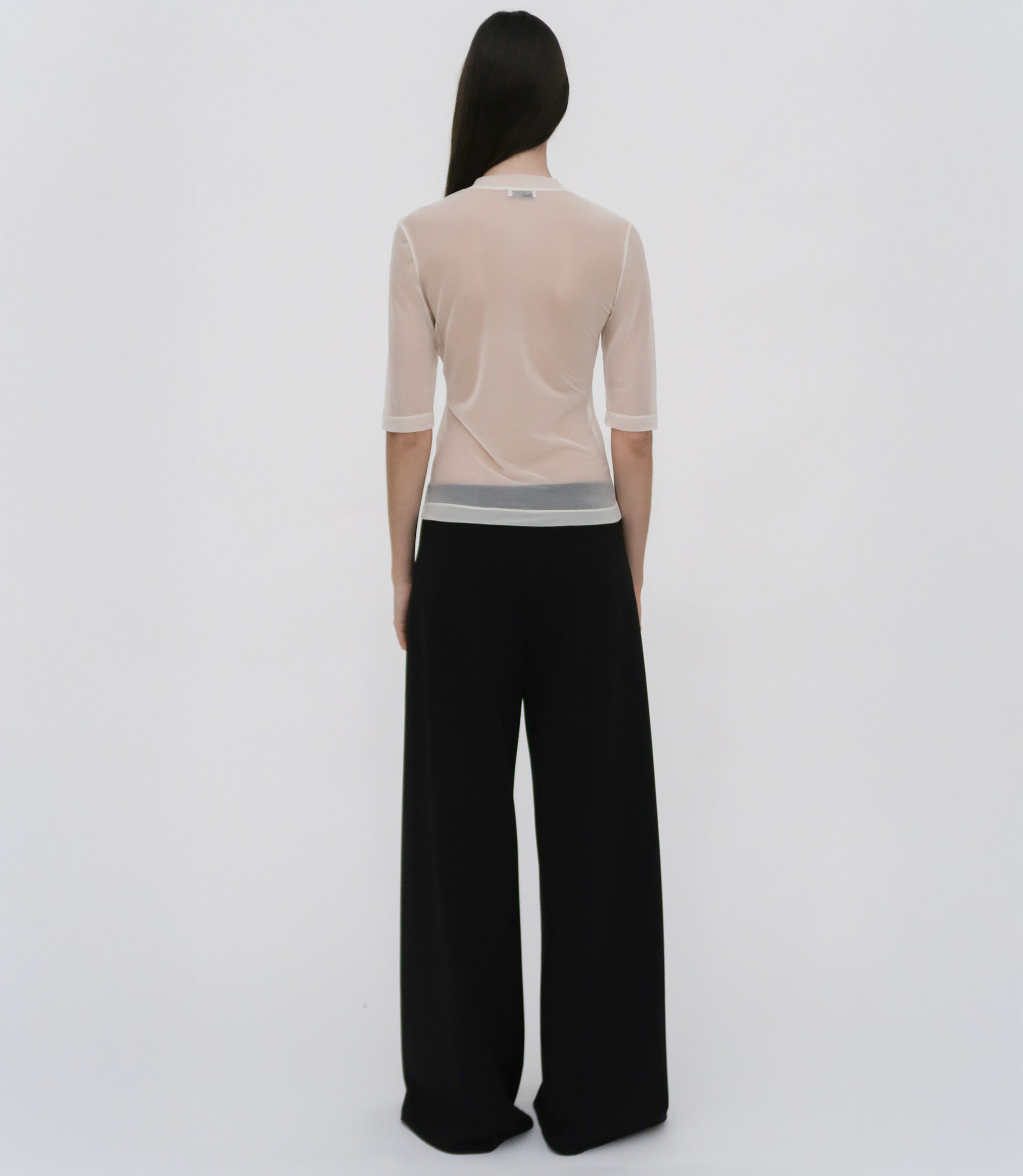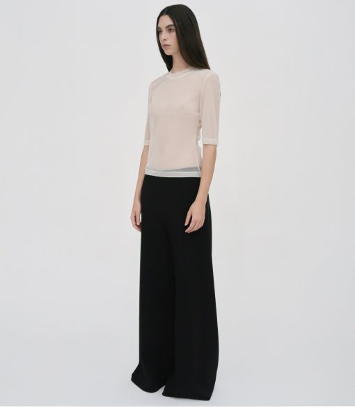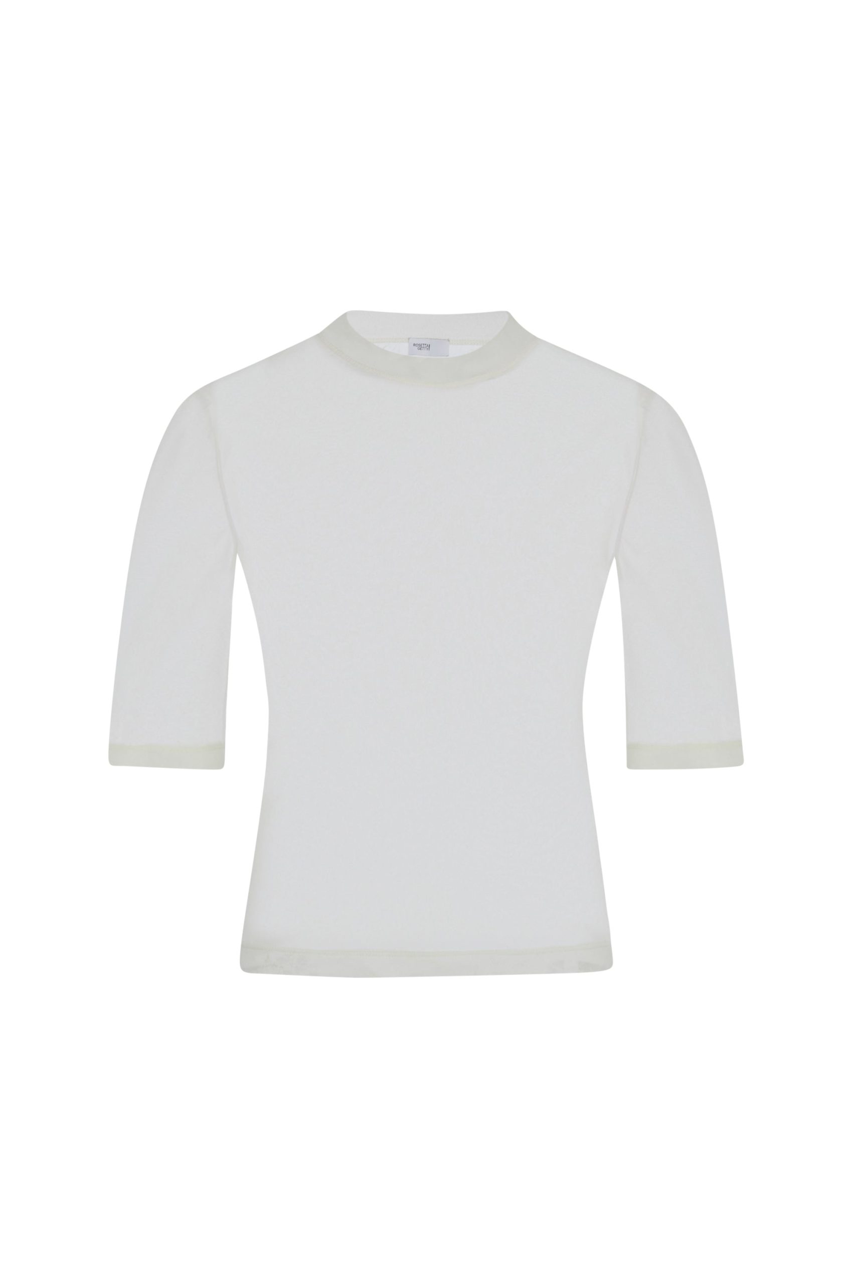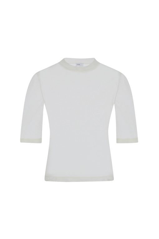 Pre-Fall 25’s new Sheer Jersey is designed for layering, reimagining our signature T-shirt silhouette. The transparent fabric is an airy contrast to the flattering style, an elevated version of the wardrobe- essential crewneck T-shirt. Cut close to the body, it has a versatile silhouette with fitted sleeves that hit just above the elbow.