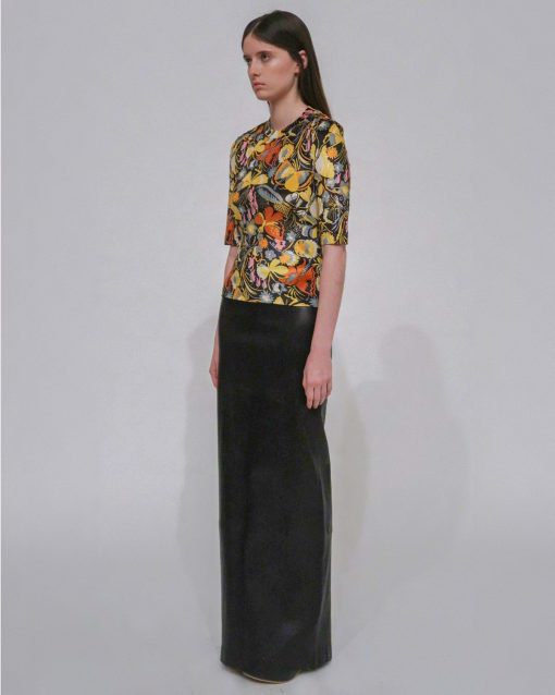 Rosetta Getty’s signature flattering top, an elevated version of the wardrobe-essential crewneck T-shirt, is cut close to the body. Featuring in the season’s bold Butterfly Floral Velvet Jersey, it has a versatile silhouette with fitted sleeves that hit just above the elbow.