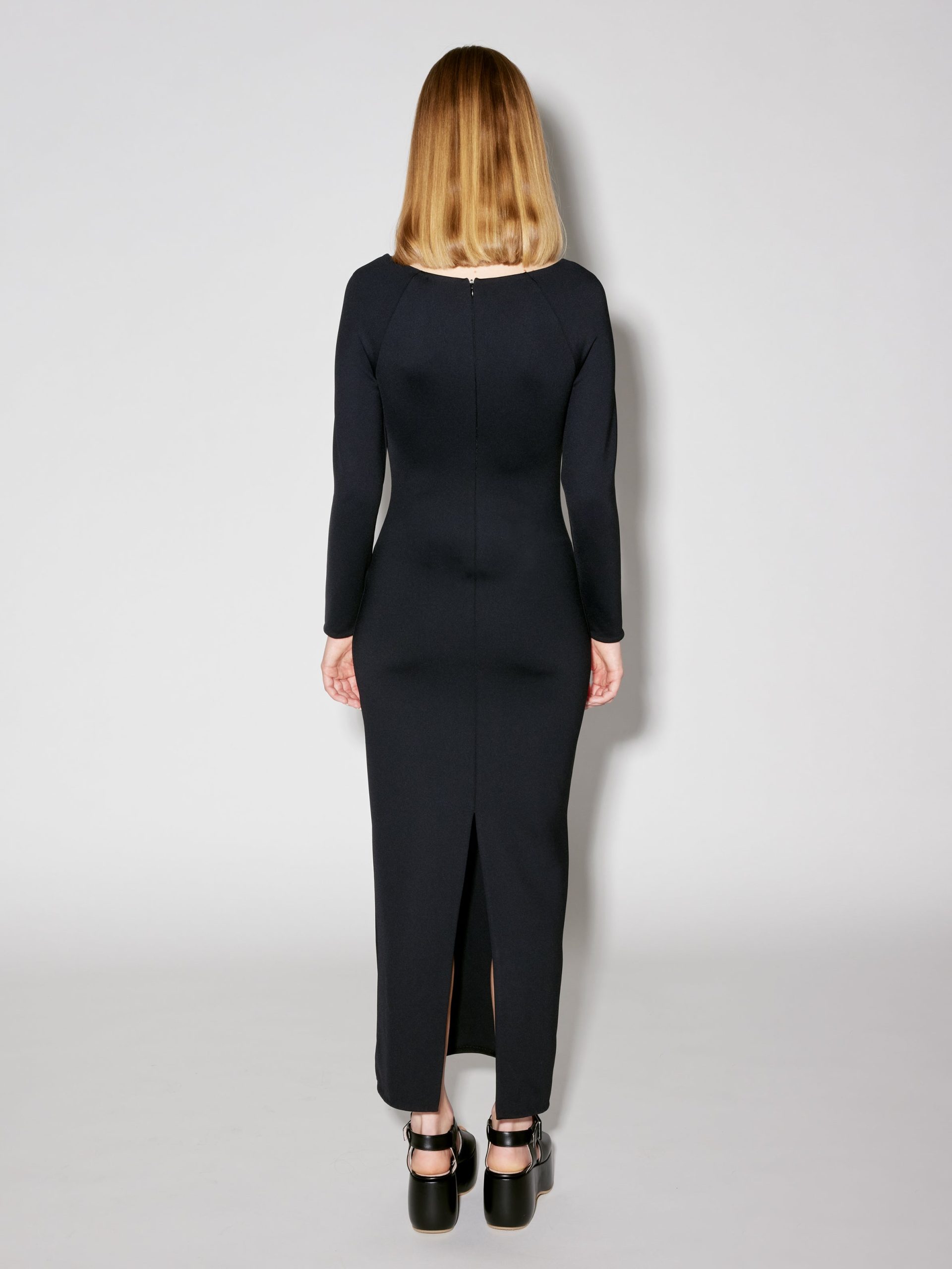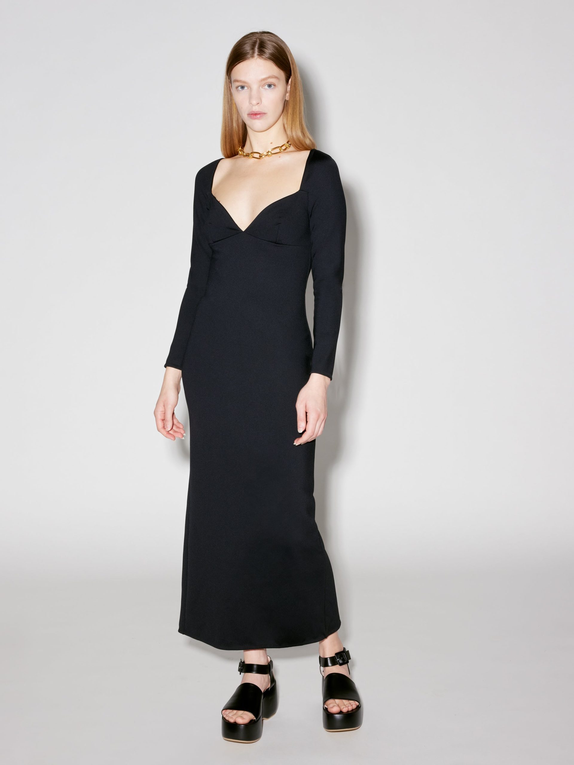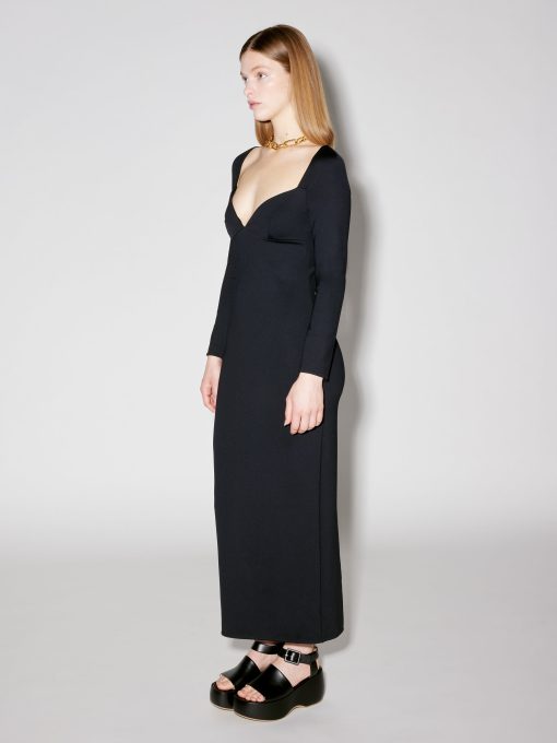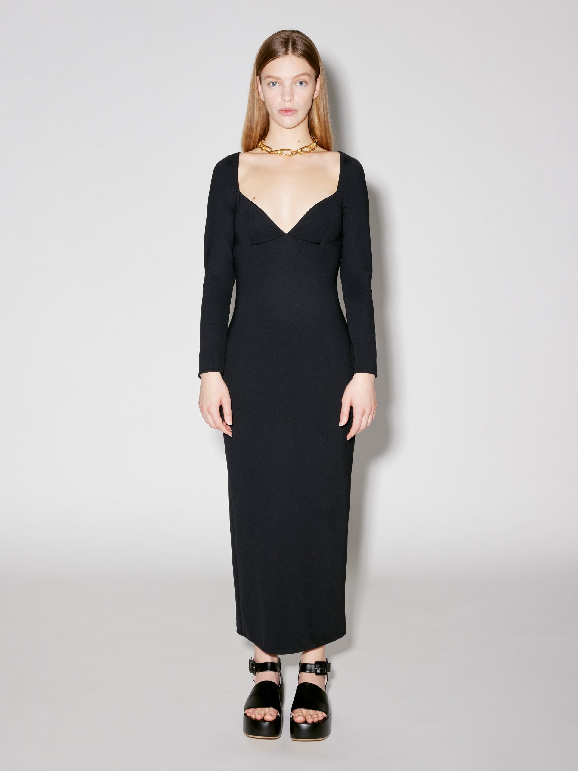 Rosetta Getty’s Scuba Doubleknit is crafted into a sleek new silhouette for Spring 23. Designed with an elegant column shape, this flattering dress features a sculpted sweetheart neckline with long sleeves and a close fit accentuating the body’s natural curves.