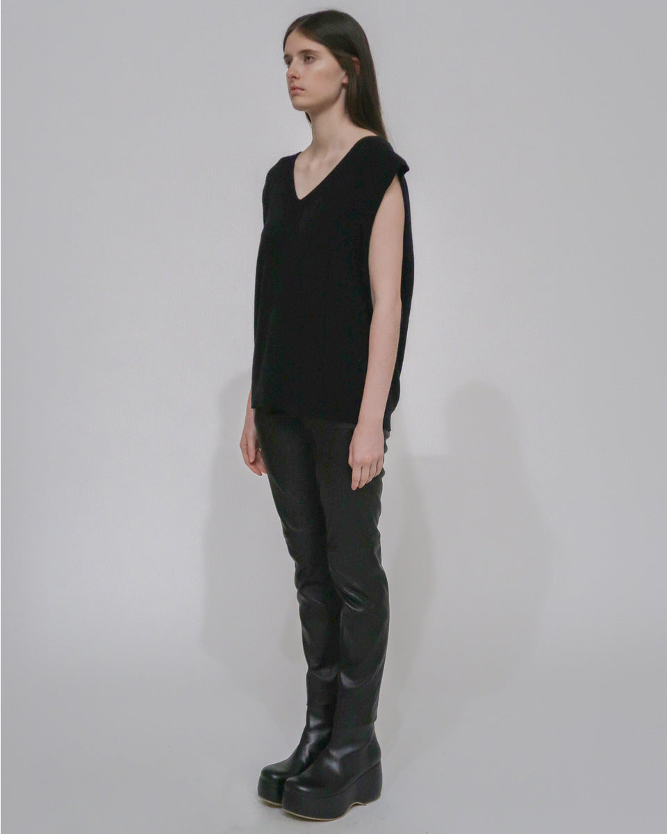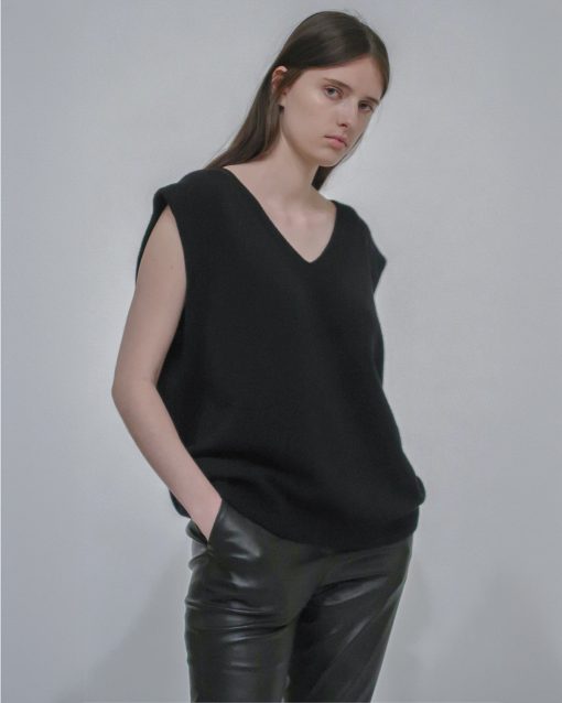 Designed for a generous fit, the Oversized Sweater Vest is knit of soft wool and cashmere. Featuring a wide V-neck, it falls to the hip with a wide fit that enables perfect layering over both jersey tees and tailored shirting.