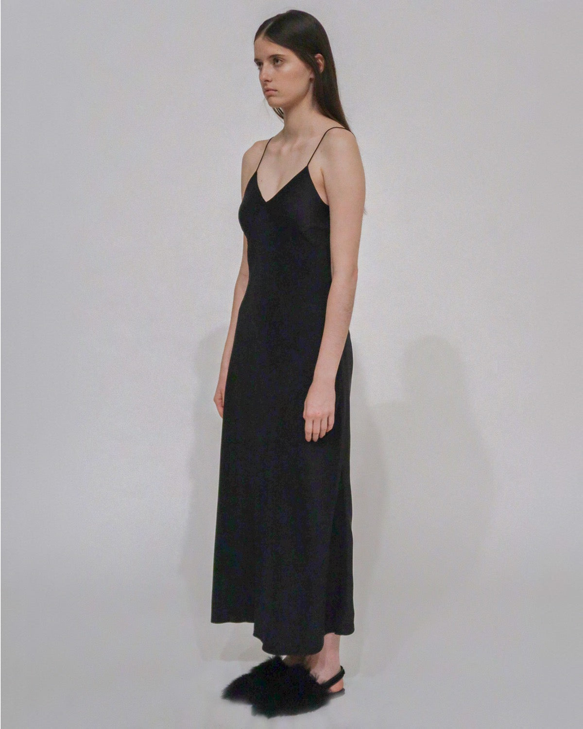 Stunning in its simplicity, the Paneled Bias Slip Dress epitomizes refined elegance. Cut in sumptuous Silk Satin, the radiant fiber drapes effortlessly throughout the silhouette—falling fluidly from the seamed bust to the ankle-length hem.
