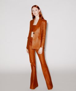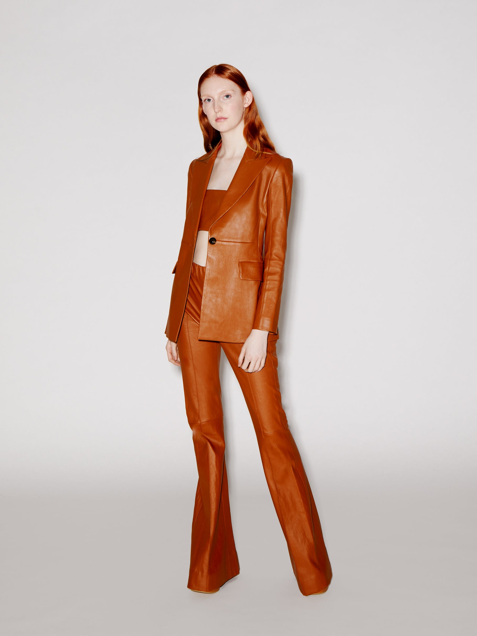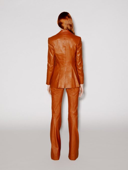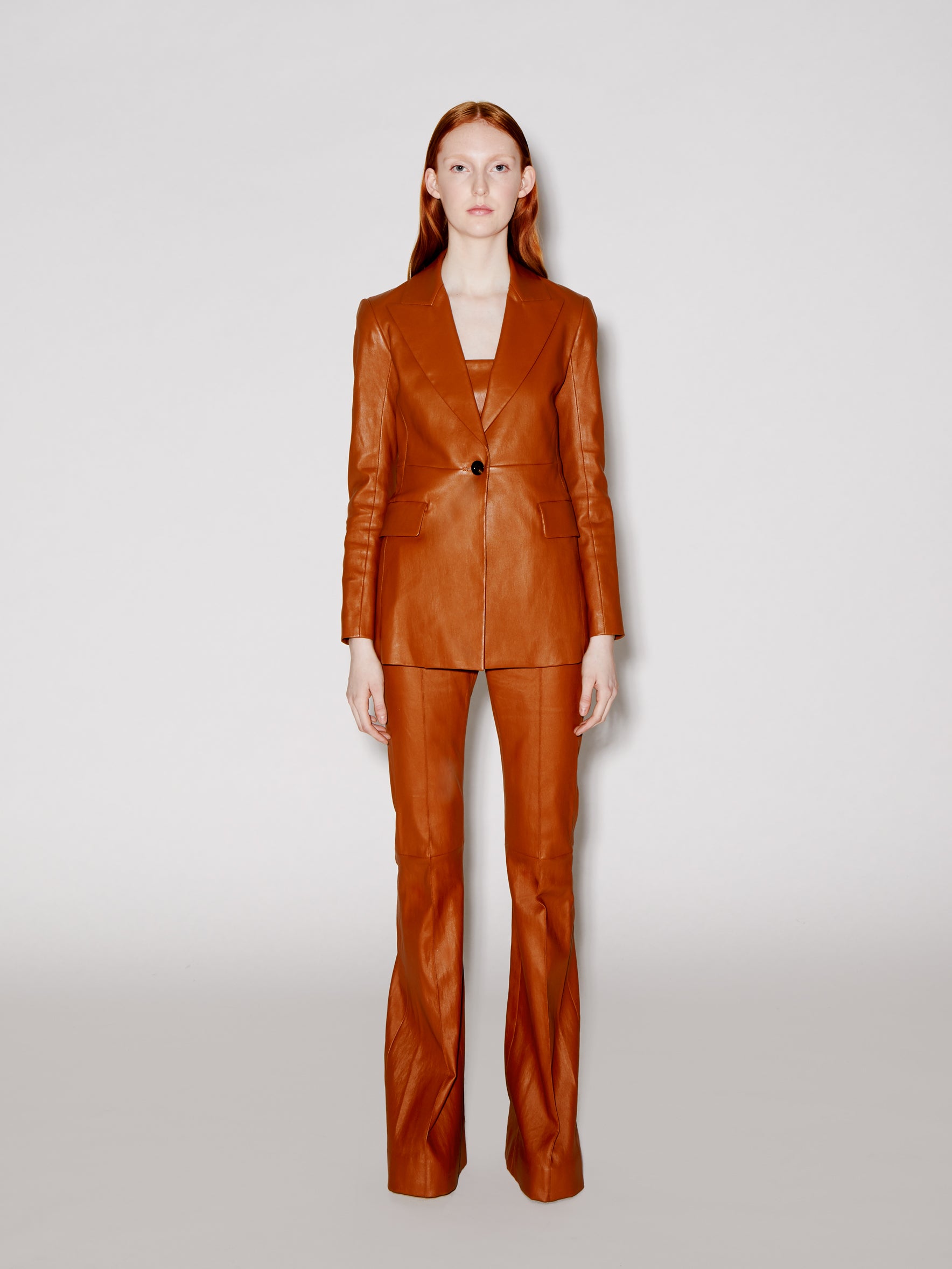 A signature Rosetta Getty style, this tailored blazer is elevated by its soft, stretch lambskin construction. Sophisticated peak lapels pair with a longer silhouette while shaping seams provide a perfect fit.