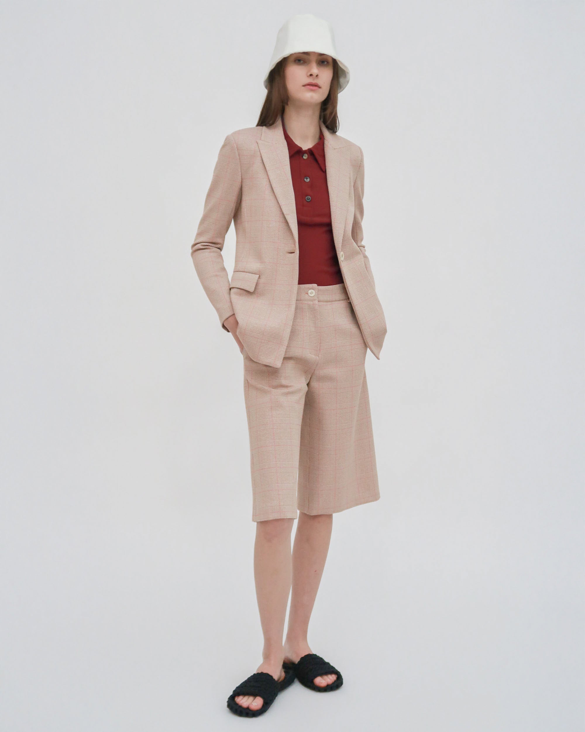 An exclusive fabrication for the season, the Prince of Wales Plaid Interlock Jacquard is similar to our Interlock Jersey with a slightly slick hand and added elastic to contour the body. It’s produced by an Italian mill certified for its sustainable practices by the Associazione Tessile e Salute (Health and Textiles Association) and Forest Stewardship Council (FSC), which uses viscose produced using sustainably sourced and certified FSC wood pulp.