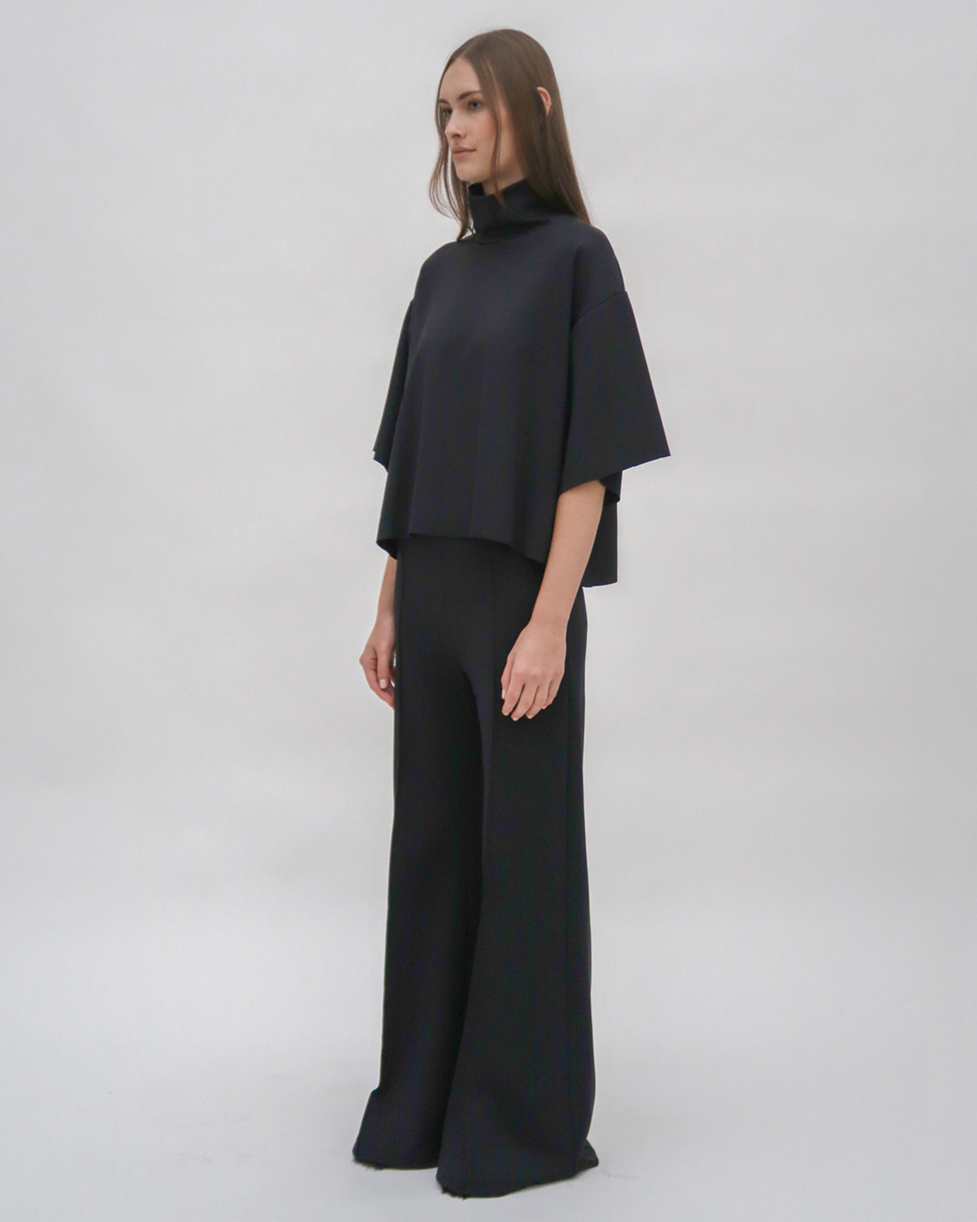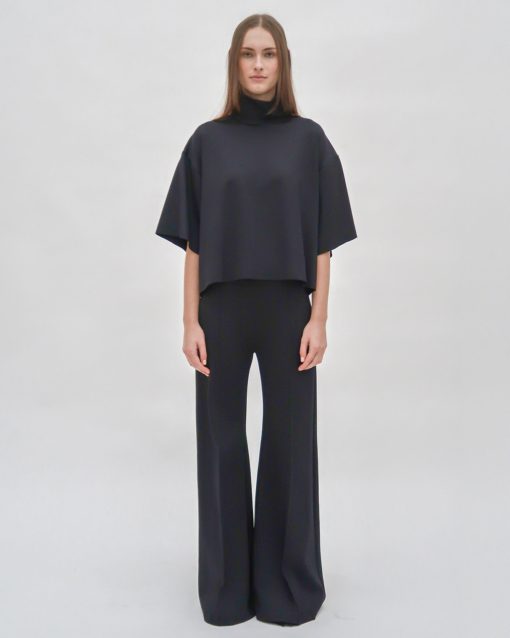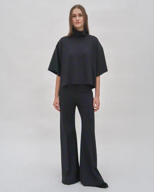 Cut to flatter and elongate, our Pintuck Wide Flare pant features for Resort 25 in technical Scuba Doubleknit. The sleek fabric gently embraces the body’s natural curves through close-fitting hips and thighs with a wide flare leg—smoothing the silhouette while remaining comfortable.
