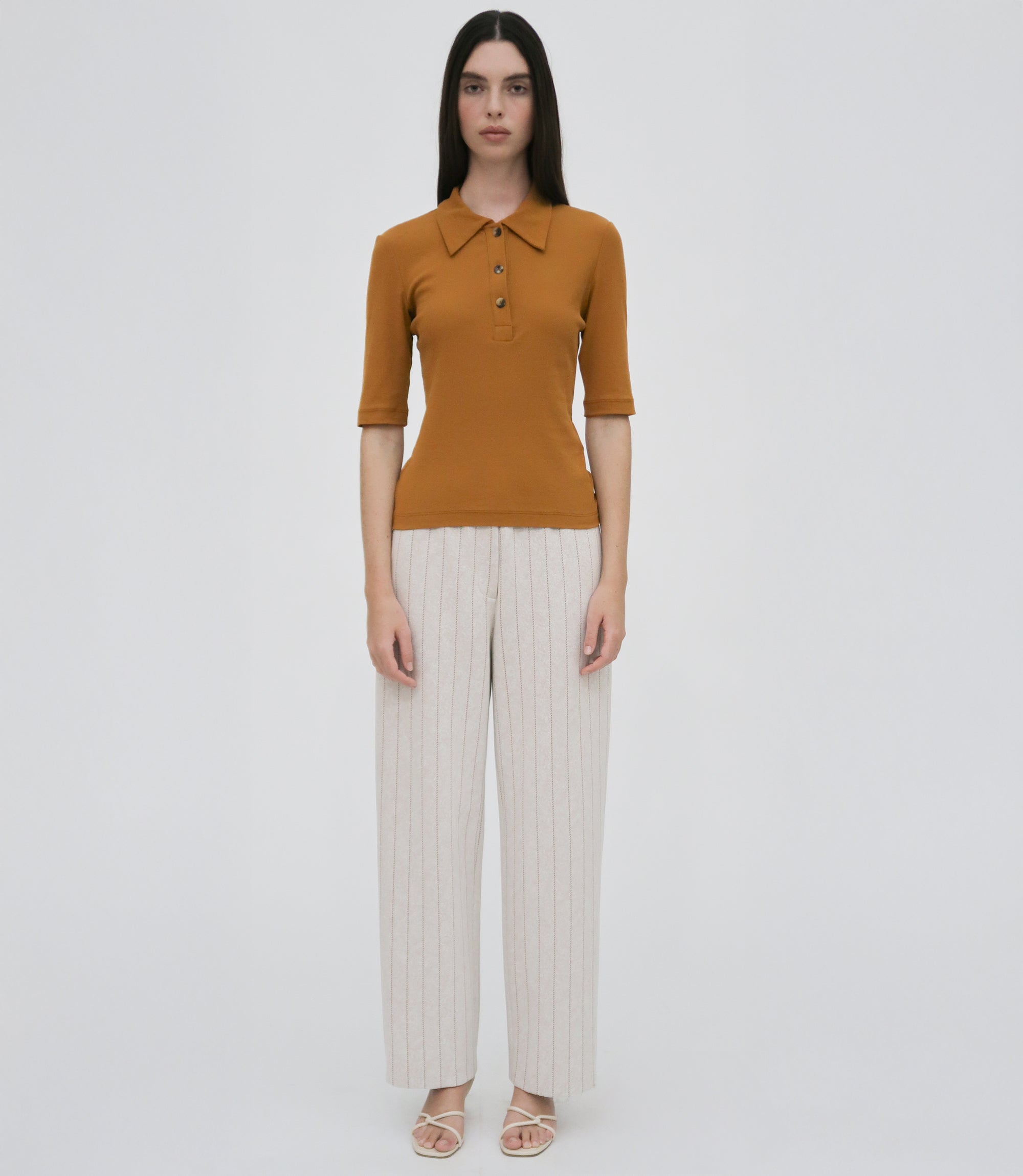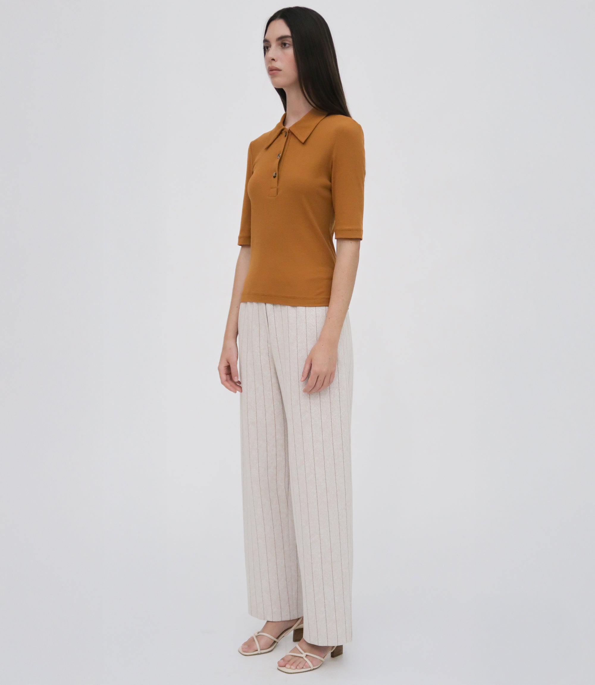 Cut from our fluid, form-fitting Mercerized Cotton Rib Jersey, this polo tee gently hugs the silhouette. A wardrobe staple we pull for time and again, this essential style enhances and defines the body’s natural curves in a comfortable and wearable way.