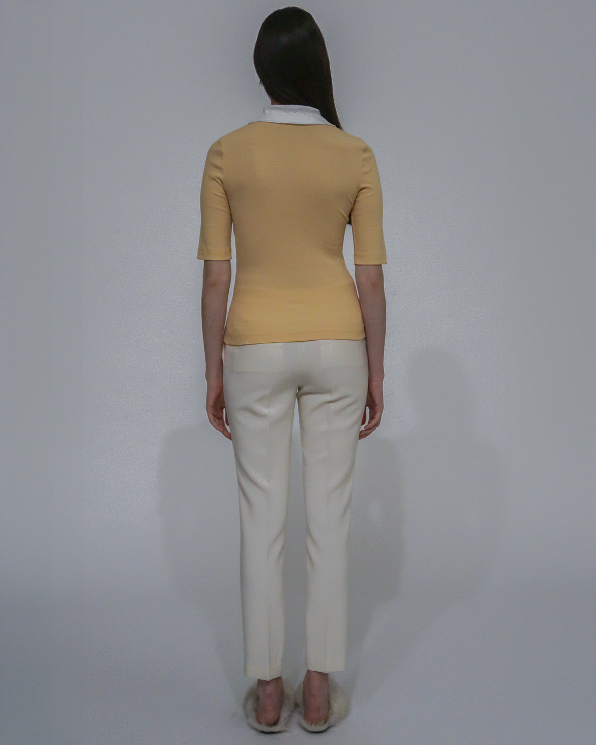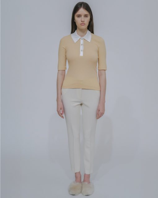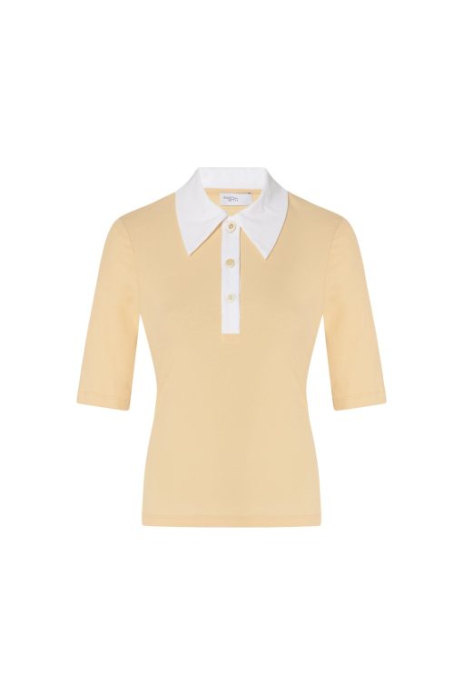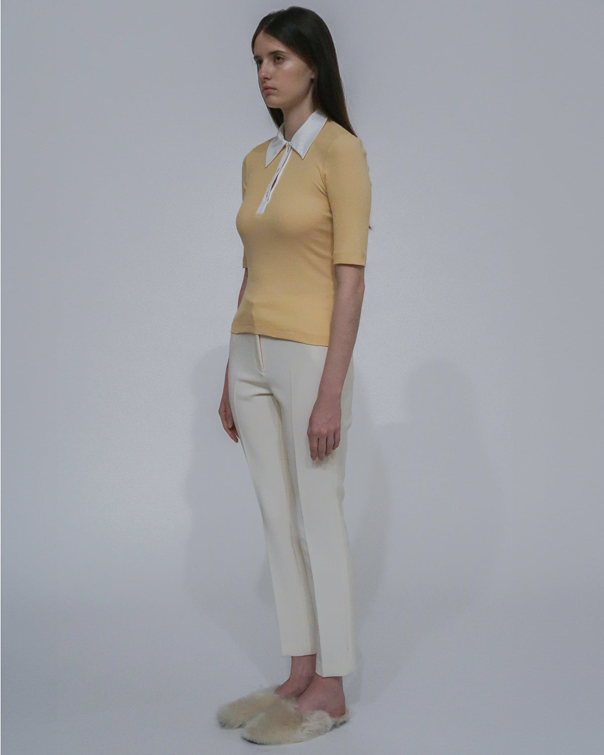 One of our longtime closet staples, this polo tee is cut from our beloved Mercerized Cotton Jersey. The fluid, soft fabric gently hugs the silhouette, enhancing and defining the body’s natural curves in a comfortable and wearable way.