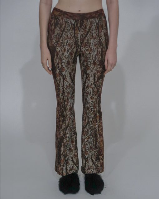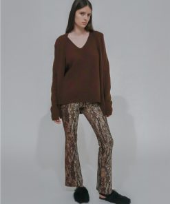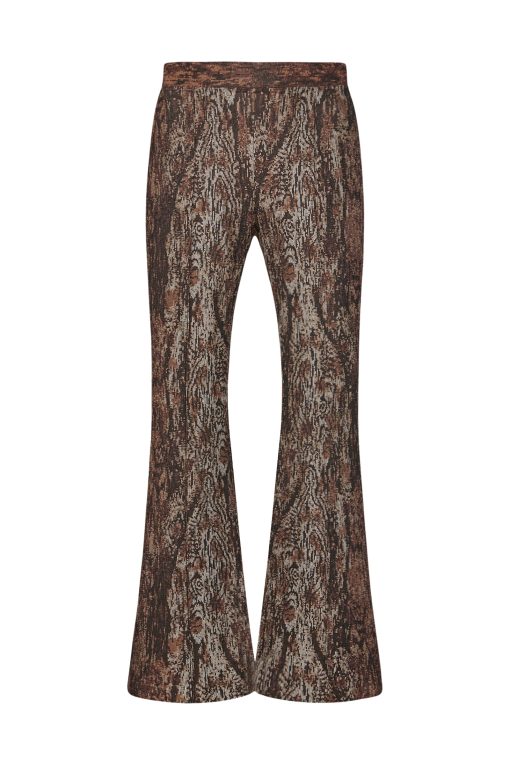 Crafted in the seasonal Woodgrain Interlock Jacquard, this signature pant is designed to flatter the body with a mid-rise and flared leg. Rosetta Getty’s special fabric and the elasticized waist impart ease to the cropped silhouette.