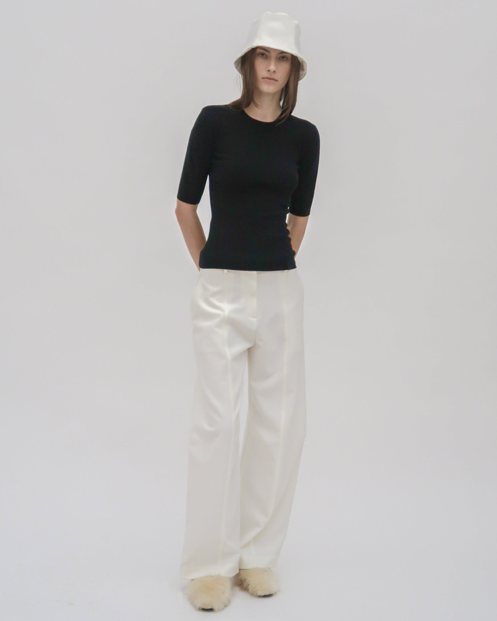 Knit with plenty of stretch but a bit of structure, Rosetta Getty’s Stretch Merino has the qualities of a soft wool but with a crisp hand—it smoothly and seamlessly adapts to the wearer’s body.