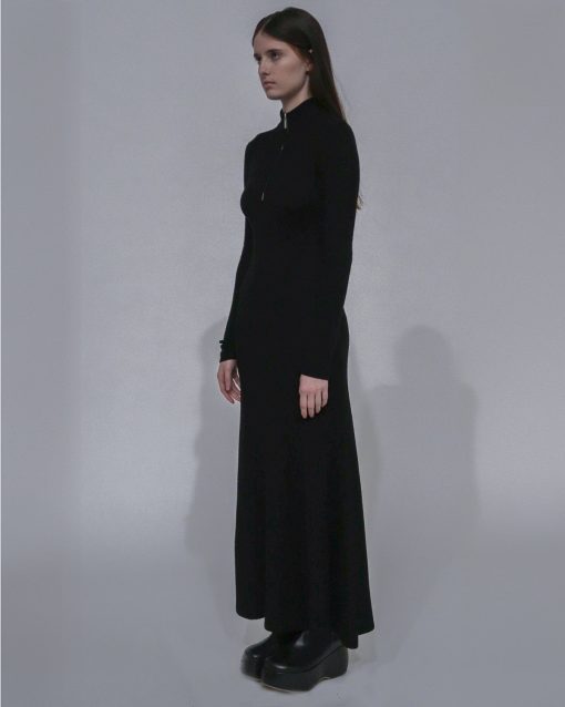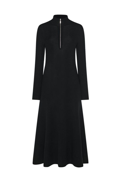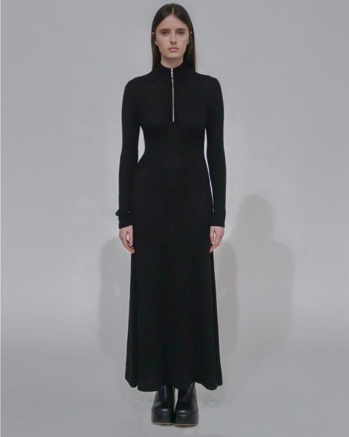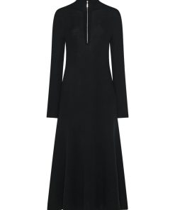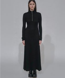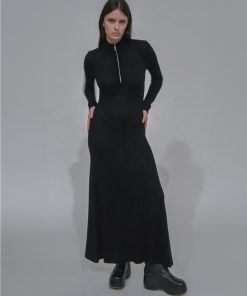 Rosetta Getty Women’s Ribbed Zip Up Turtleneck Dress | Black