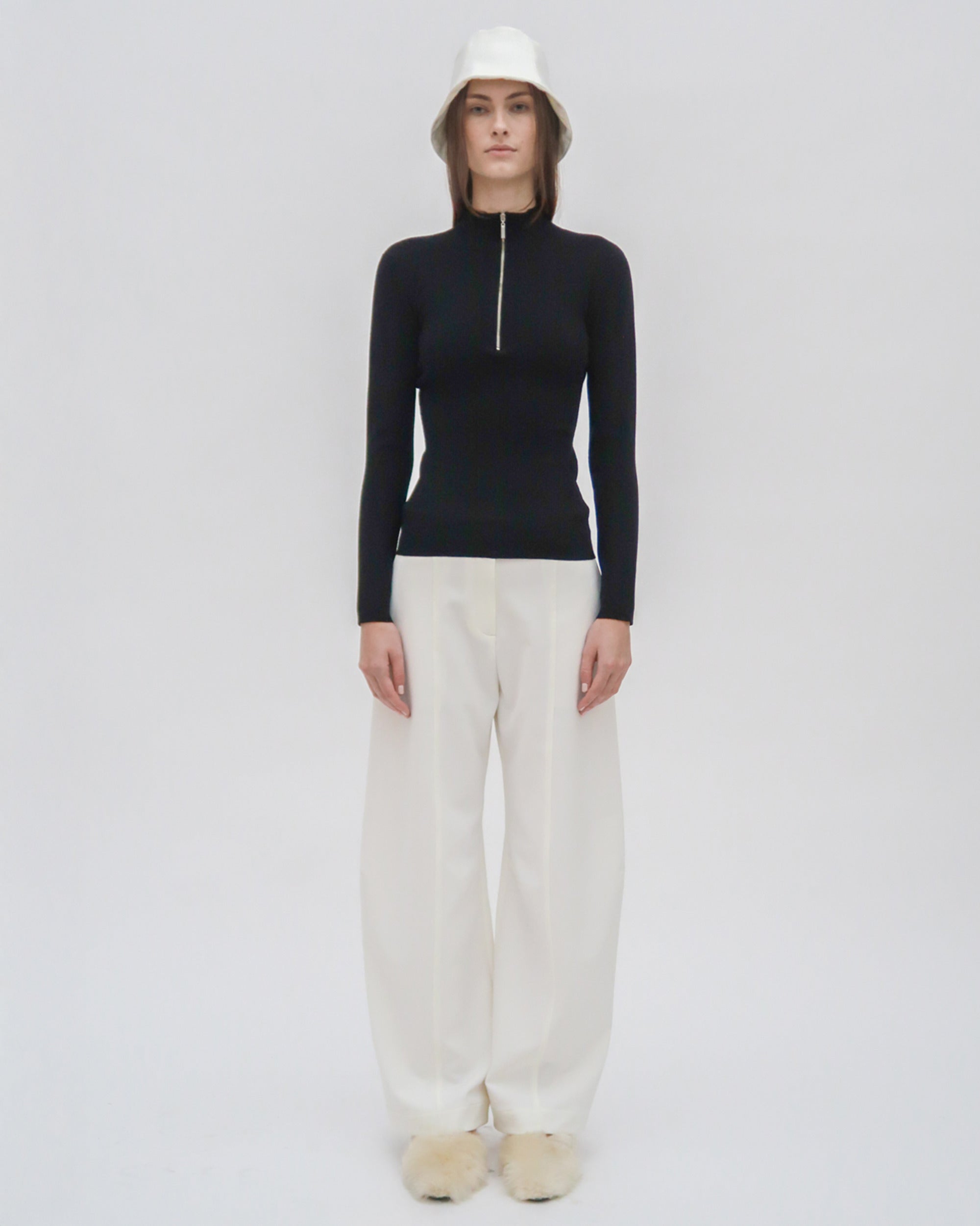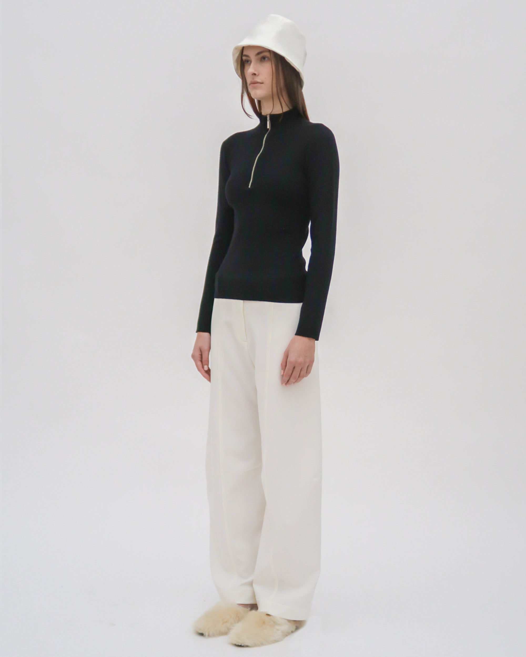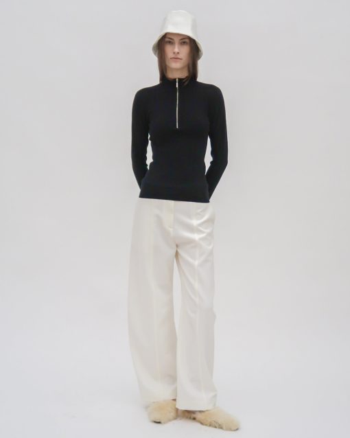Our Zip-Up Turtleneck Top is designed for versatility: cut close to the body, it has long sleeves and a sporty zip placket. Stretch Wool Merino adds sophisticated softness to this flattering style, while all-over ribbing allows for a close fit.