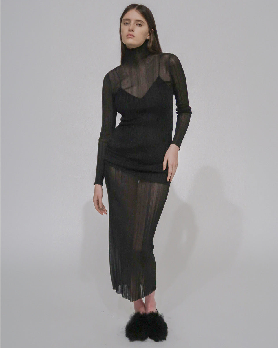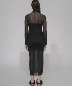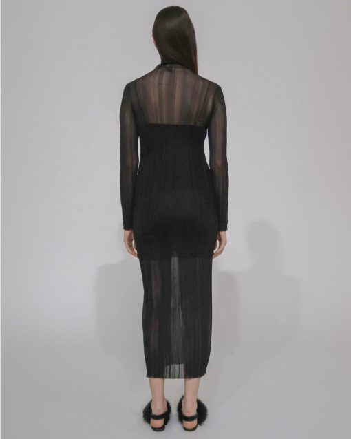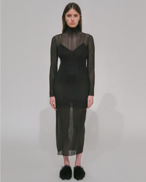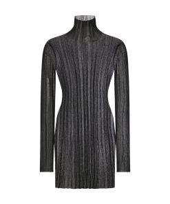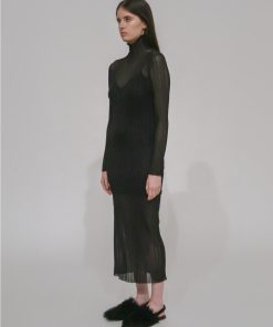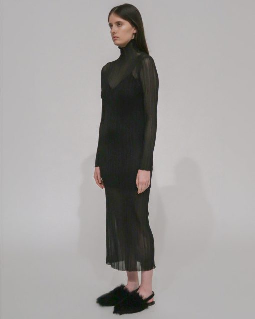 Rosetta Getty Women’s Sheer Plisse Turtleneck | Black