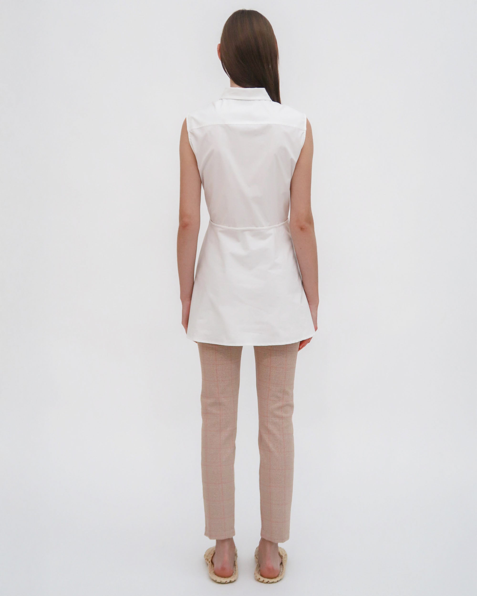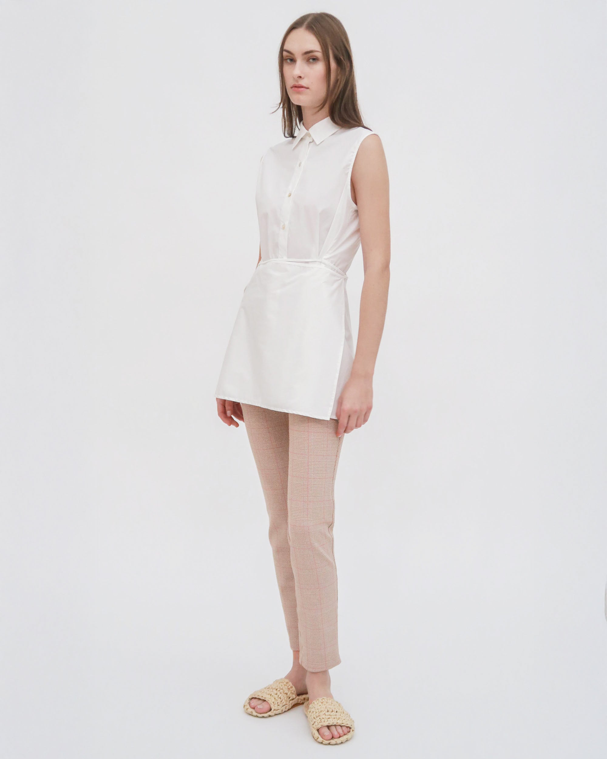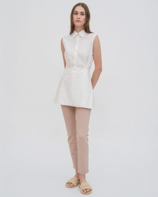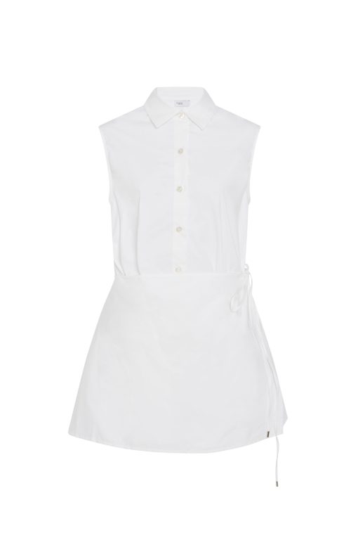 Apron silhouettes are one of the elements that have come to define the Rosetta Getty brand. Spring 25’s asymmetric style has a shorter length, offering versatile wear as a tunic, minidress, or longer top. Crafted of brand staple Stretch Cotton Poplin, it can be worn tied at the hip or left draped open for fluid movement.