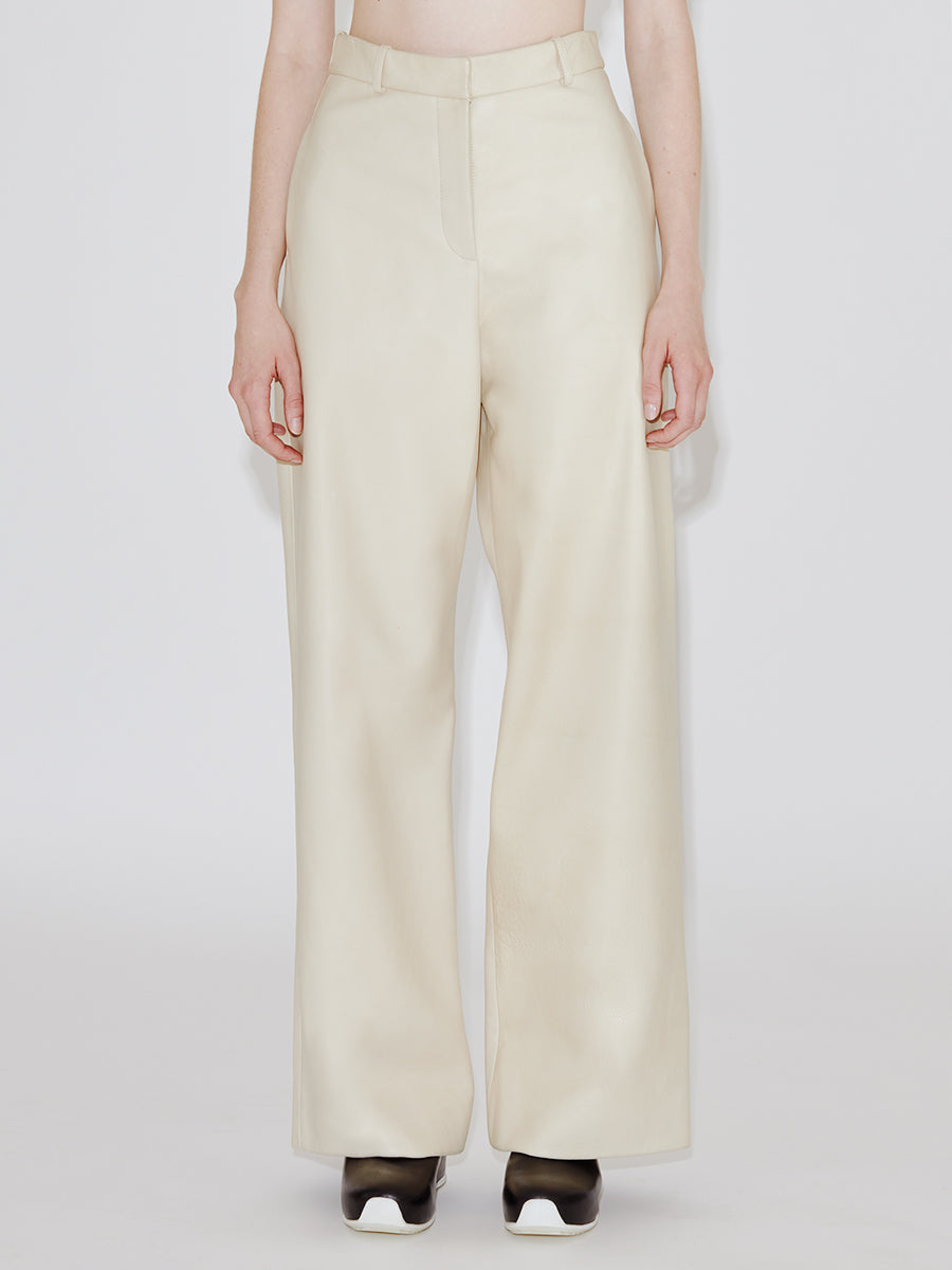 The Straight Leg Trouser is offered in an American-tanned pebble grain leather. This beautiful leather is a heftier, more utilitarian leather than our stretch plonge, and is offered appropriately in various silhouettes. The pebble grain leather takes on a more masculine characteristic with this beautiful textured leather.