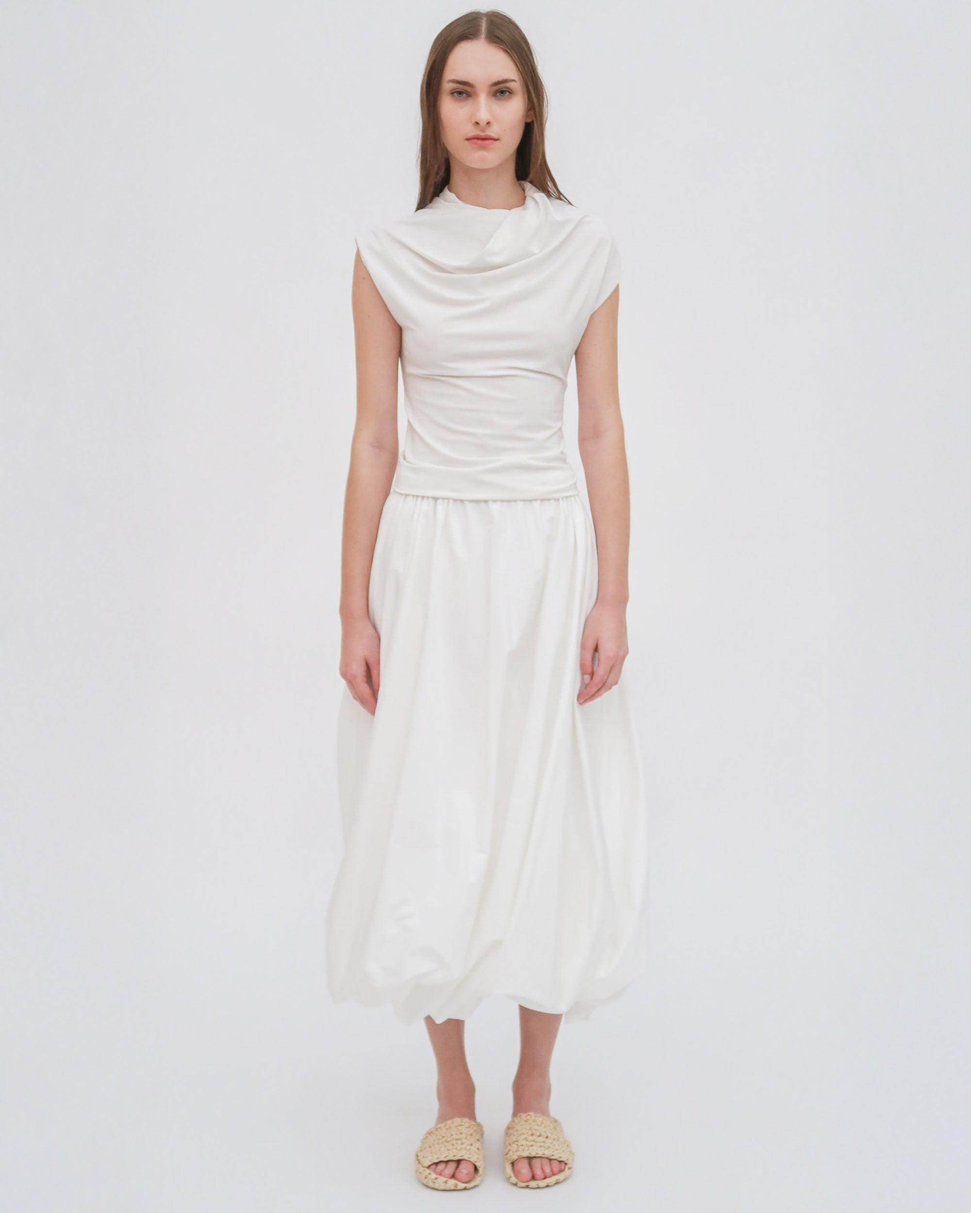 An ideal partner for Rosetta Getty signature fabric Matte Viscose Jersey, the new Twist-Neck Top reimagines a cowl neckline through a sophisticated lens. Soft twisting at the neck lends a flattering shape to the style, while lightweight mesh lining allows effortless all-day wear.