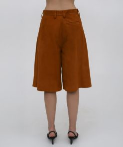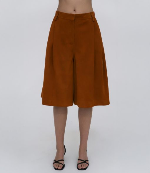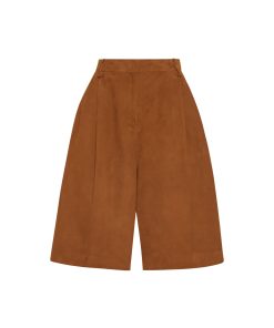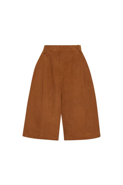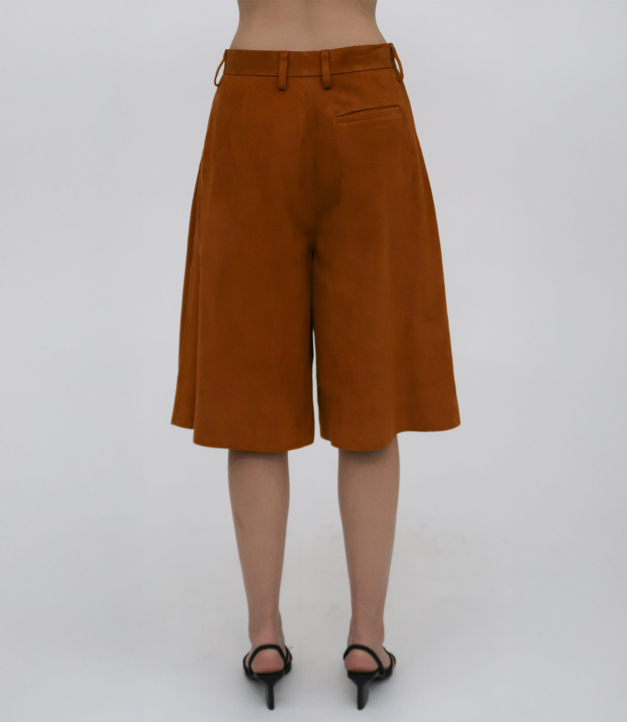 Our seasonal short silhouette is elevated in luxe lambskin suede. Flowing from waist to hem with a skirt-like effect, the style is shaped by an exaggerated front pleat and cut with an extra-wide leg for a fashion-forward sensibility that is also easy to wear.