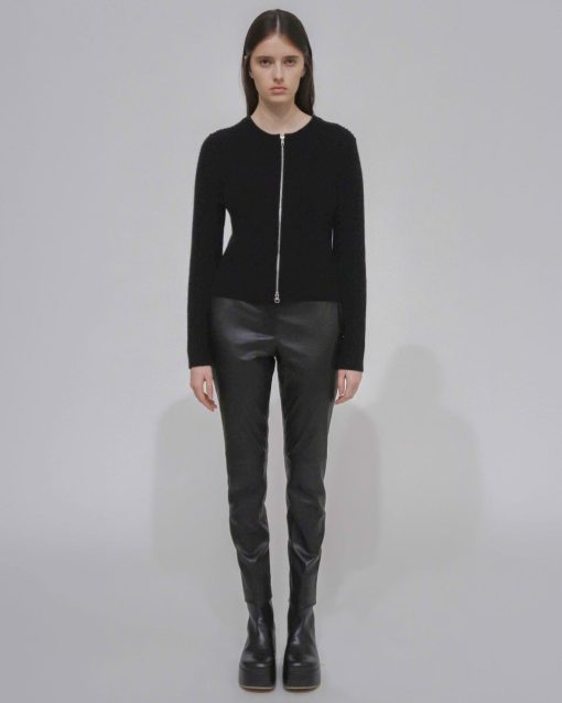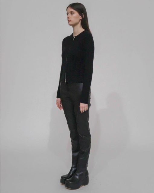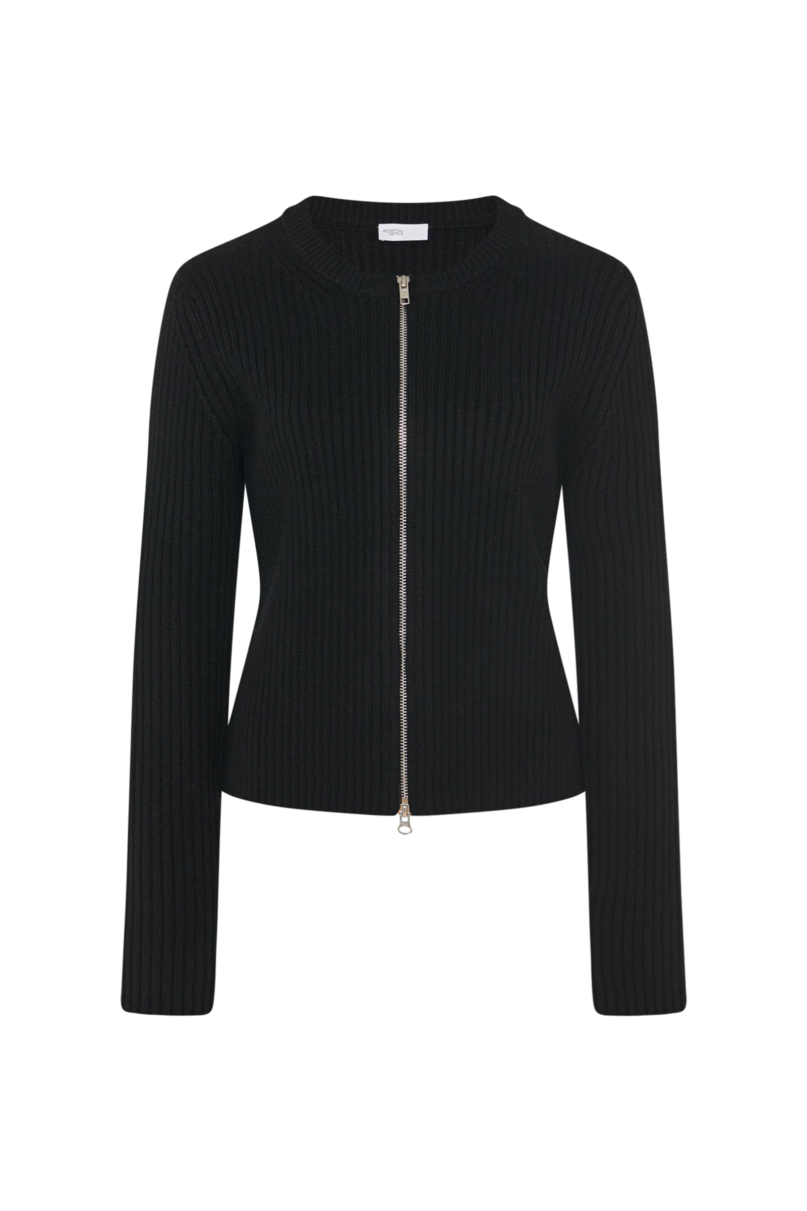 Designed with allover ribbing for a close fit, the Zip-Up Cardigan is knitted with lofty Mercerized Wool Cashmere. The quintessential crewneck silhouette is reinvented with a bold silvertone two-way zip closure, lending a utilitarian finish to the piece.